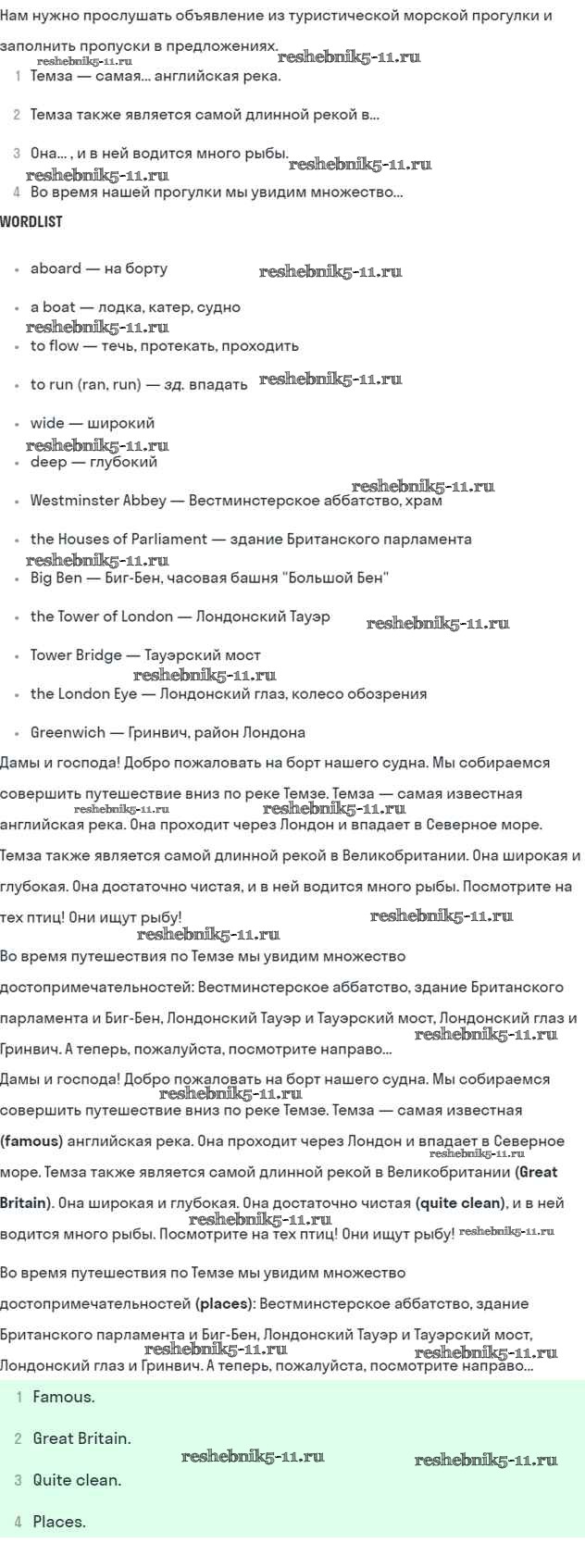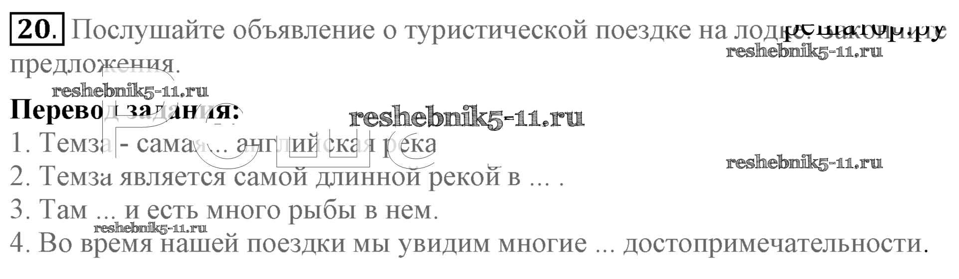 Готовая домашняя работа с ответами по Английскому языку за 5 класс Биболетова, Денисенко, Трубанева Учебник Enjoy English Титул 2015 ФГОС - Unit 3. Faces of London 20
