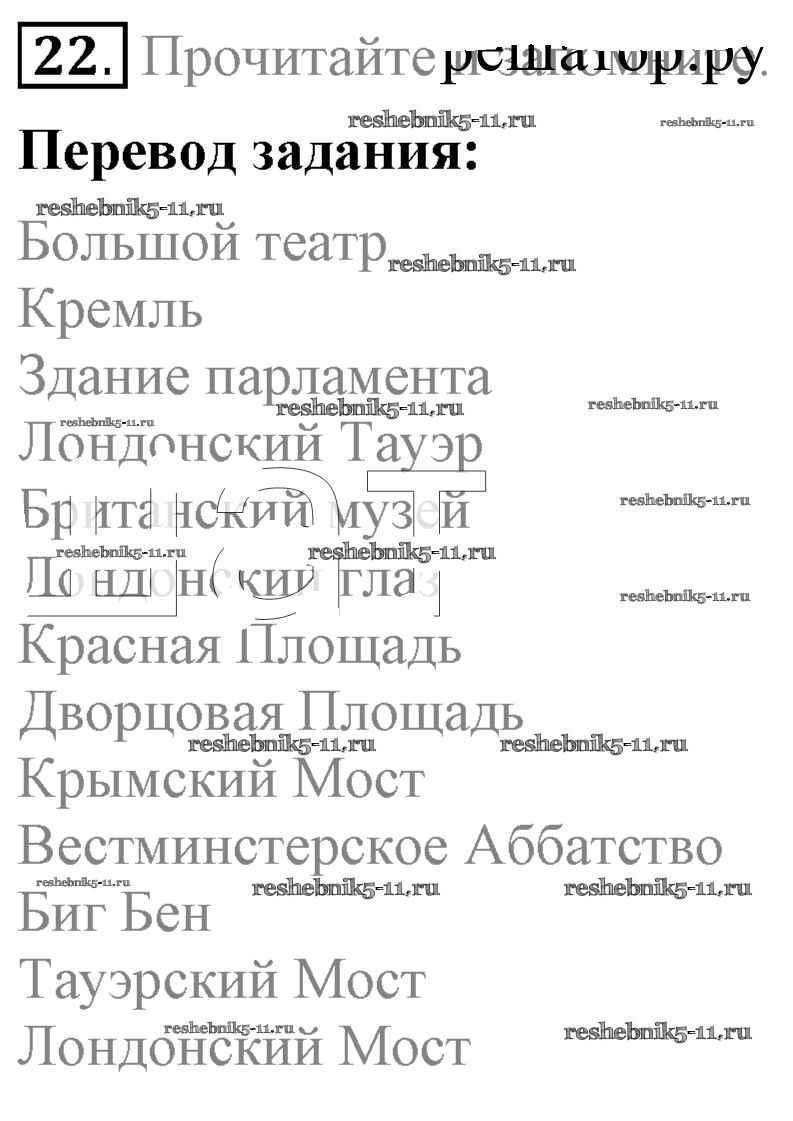 Готовая домашняя работа с ответами по Английскому языку за 5 класс Биболетова, Денисенко, Трубанева Учебник Enjoy English Титул 2015 ФГОС - Unit 3. Faces of London 22