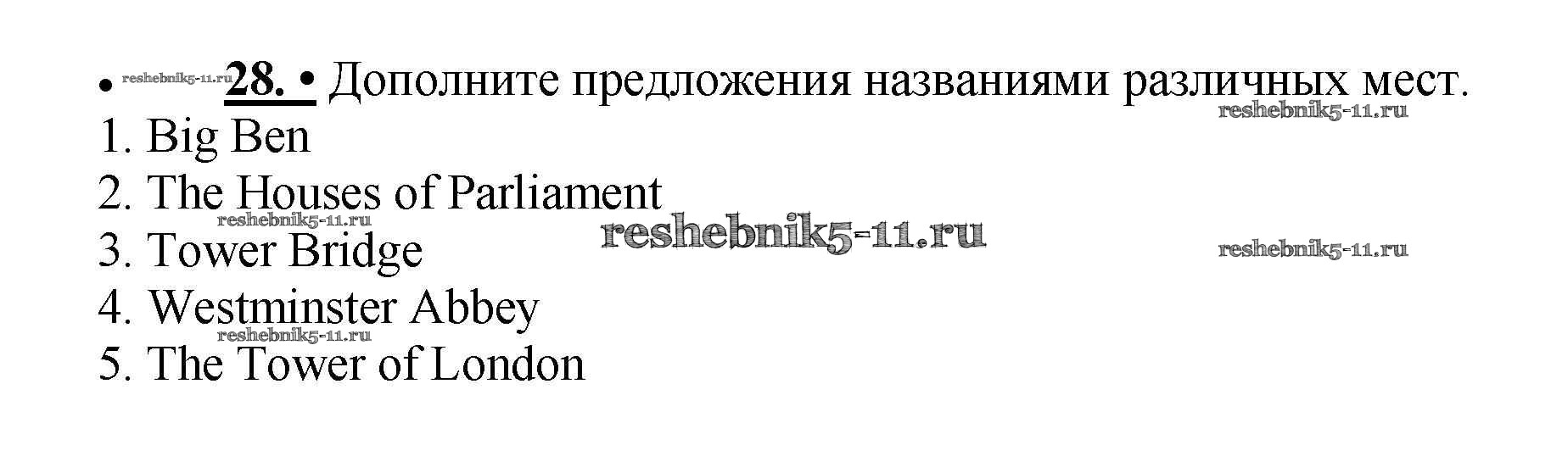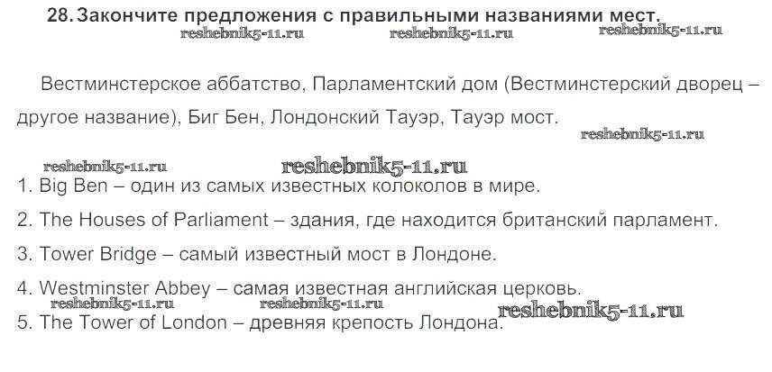 Готовая домашняя работа с ответами по Английскому языку за 5 класс Биболетова, Денисенко, Трубанева Учебник Enjoy English Титул 2015 ФГОС - Unit 3. Faces of London 28