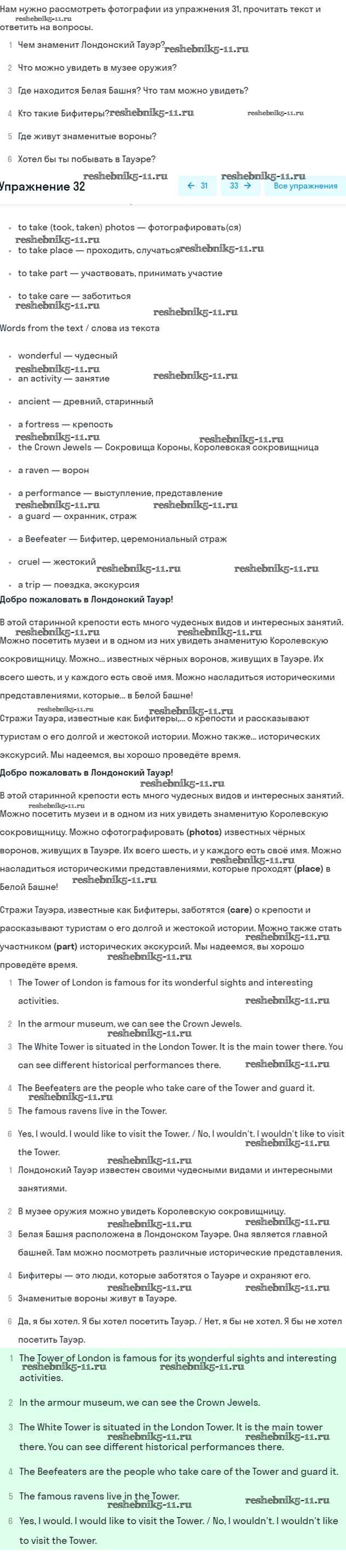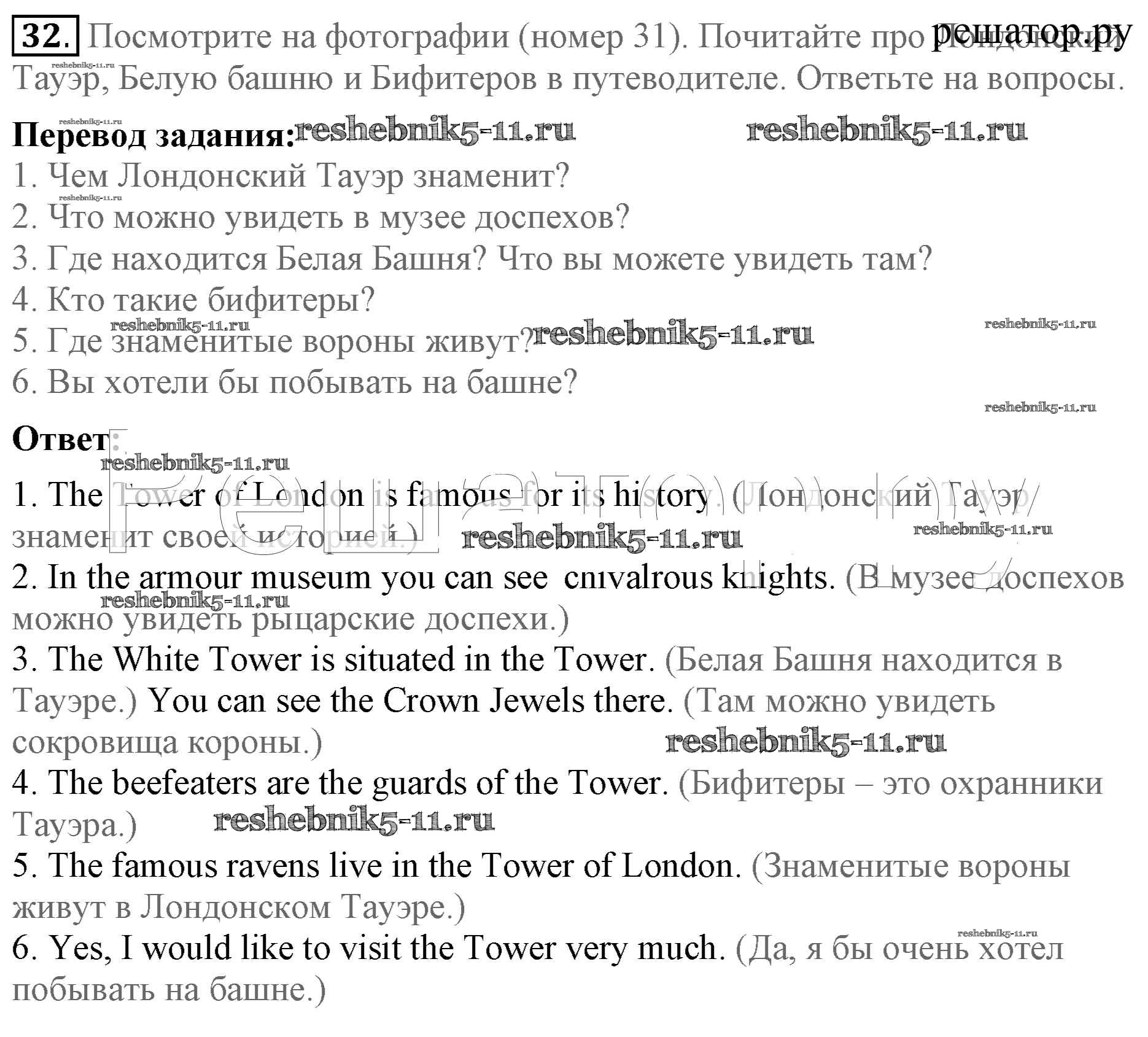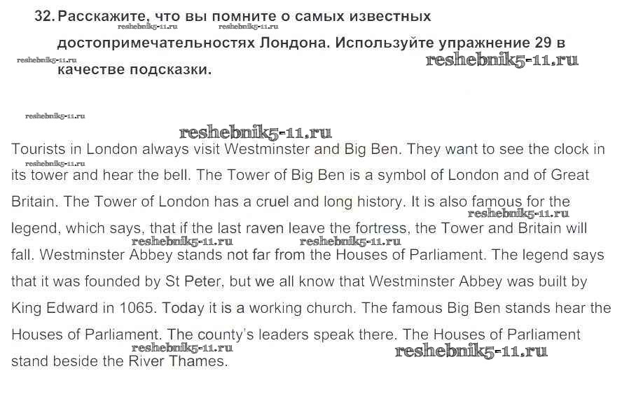Готовая домашняя работа с ответами по Английскому языку за 5 класс Биболетова, Денисенко, Трубанева Учебник Enjoy English Титул 2015 ФГОС - Unit 3. Faces of London 32