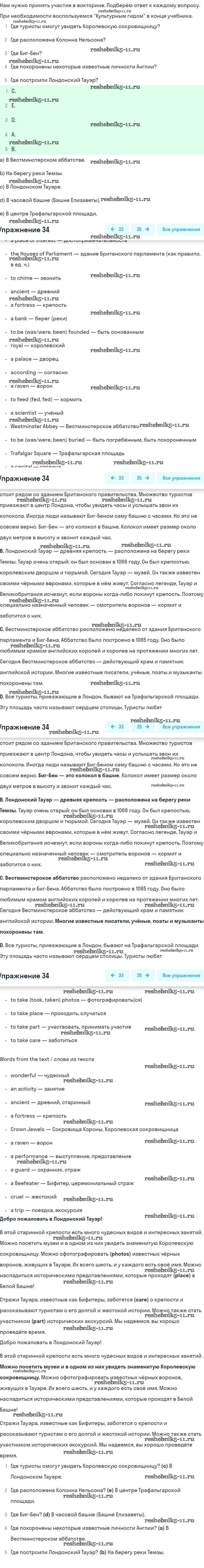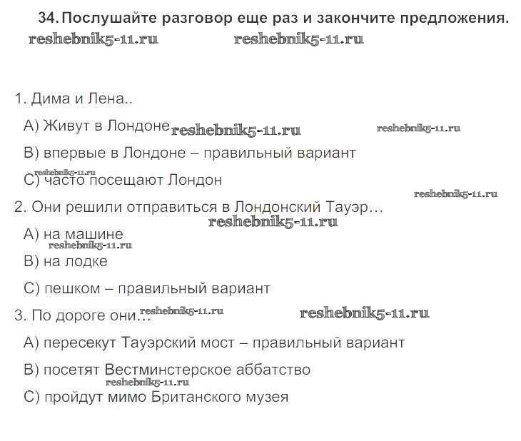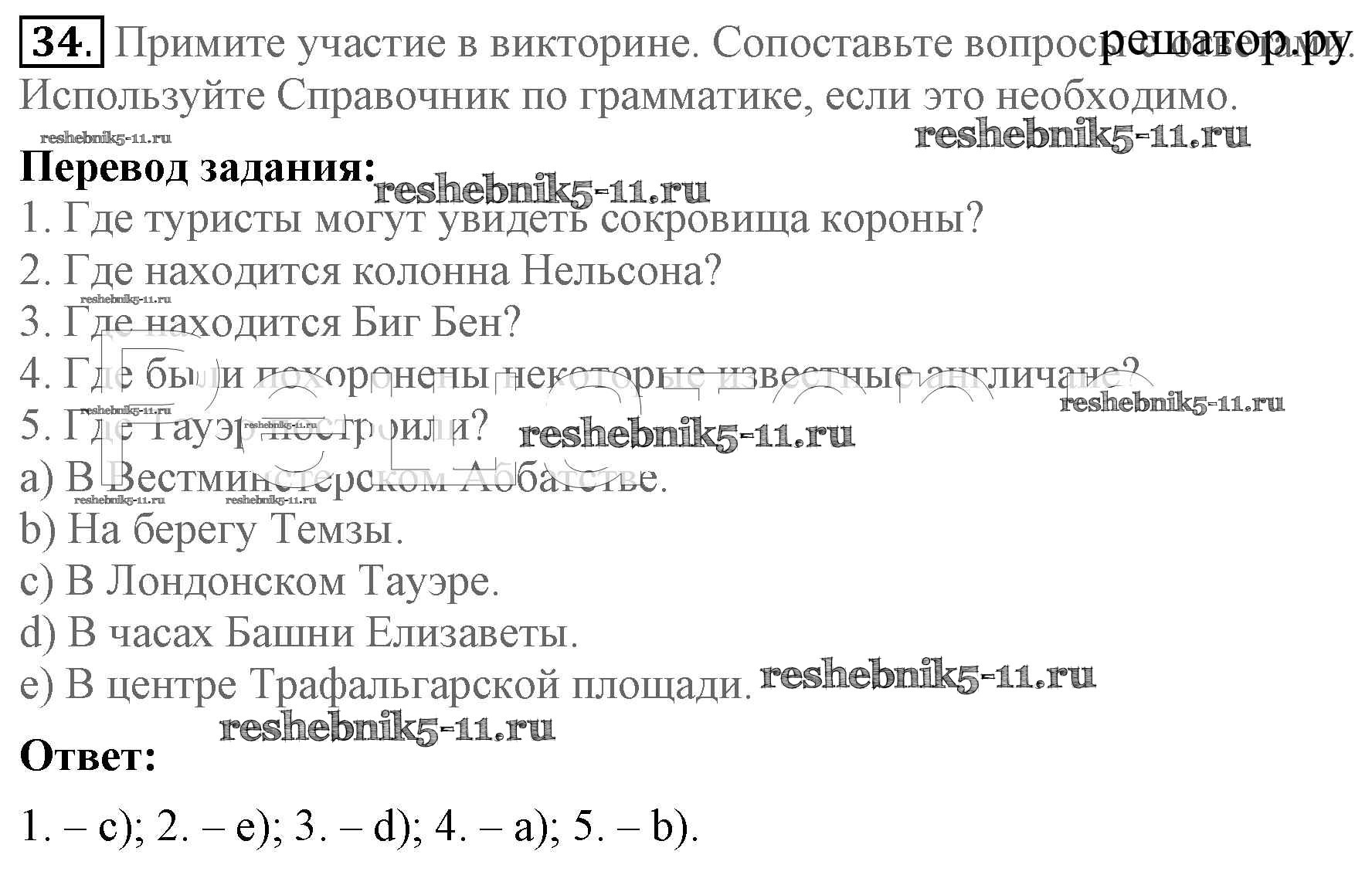 Готовая домашняя работа с ответами по Английскому языку за 5 класс Биболетова, Денисенко, Трубанева Учебник Enjoy English Титул 2015 ФГОС - Unit 3. Faces of London 34