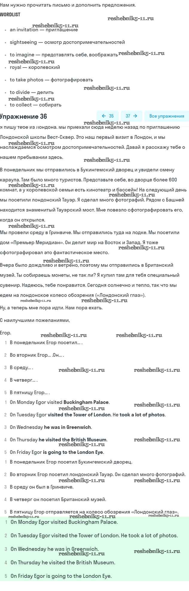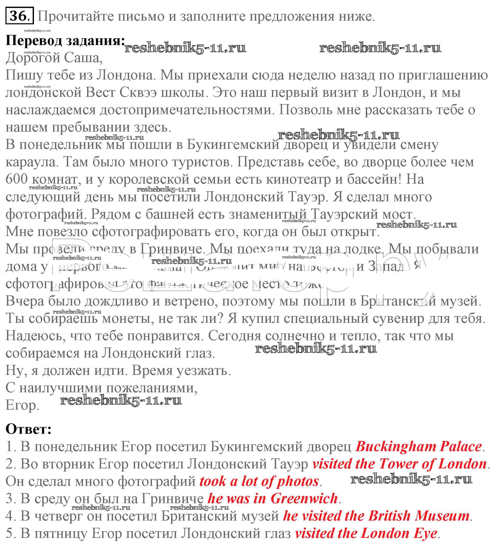 Готовая домашняя работа с ответами по Английскому языку за 5 класс Биболетова, Денисенко, Трубанева Учебник Enjoy English Титул 2015 ФГОС - Unit 3. Faces of London 36