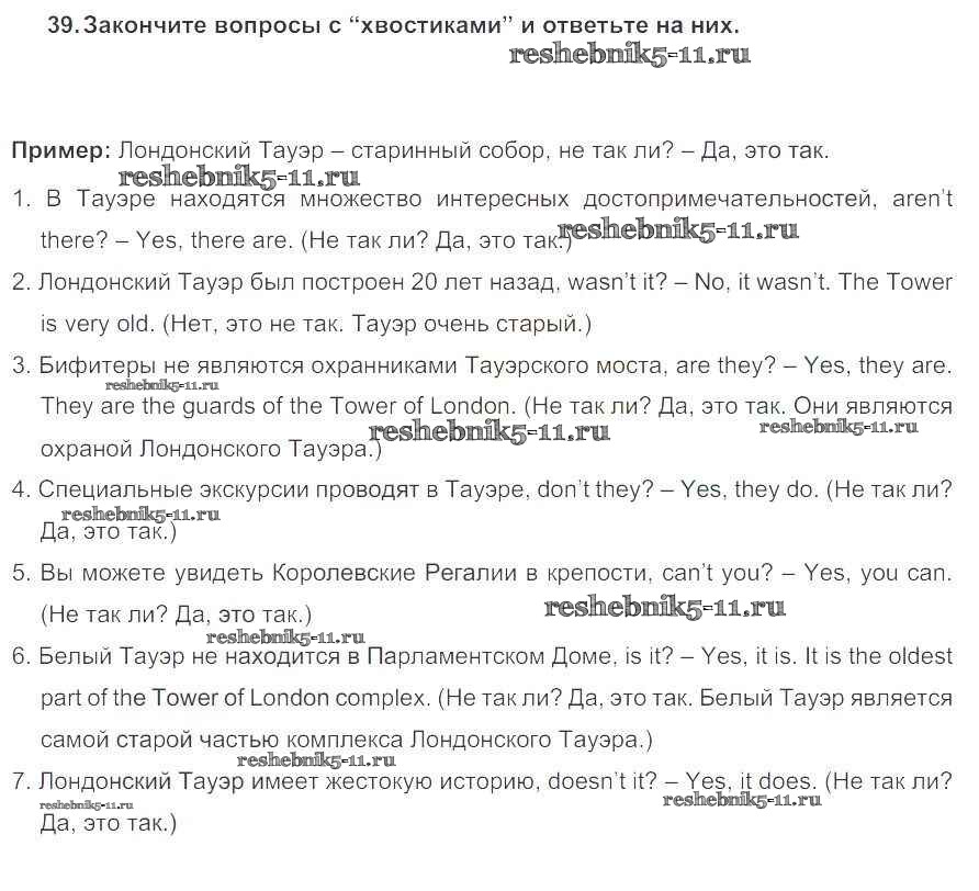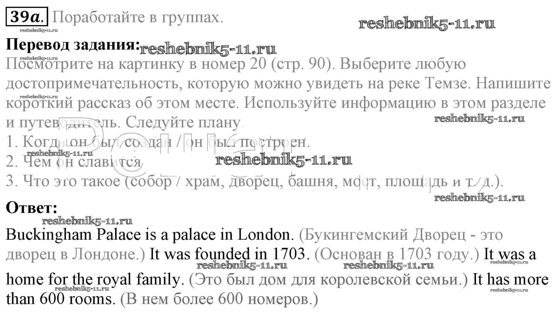 Готовая домашняя работа с ответами по Английскому языку за 5 класс Биболетова, Денисенко, Трубанева Учебник Enjoy English Титул 2015 ФГОС - Unit 3. Faces of London 39