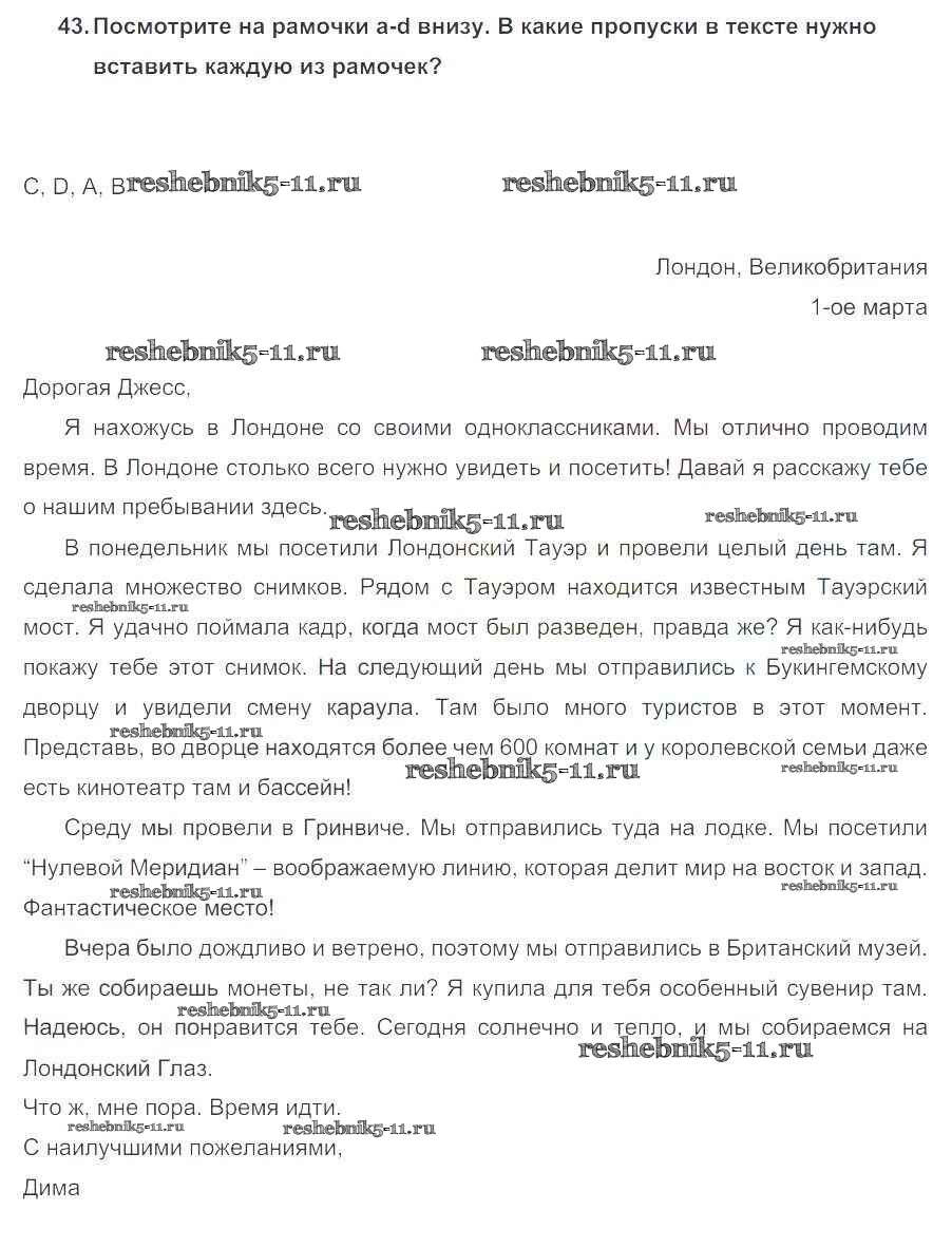 Готовая домашняя работа с ответами по Английскому языку за 5 класс Биболетова, Денисенко, Трубанева Учебник Enjoy English Титул 2015 ФГОС - Unit 3. Faces of London 43