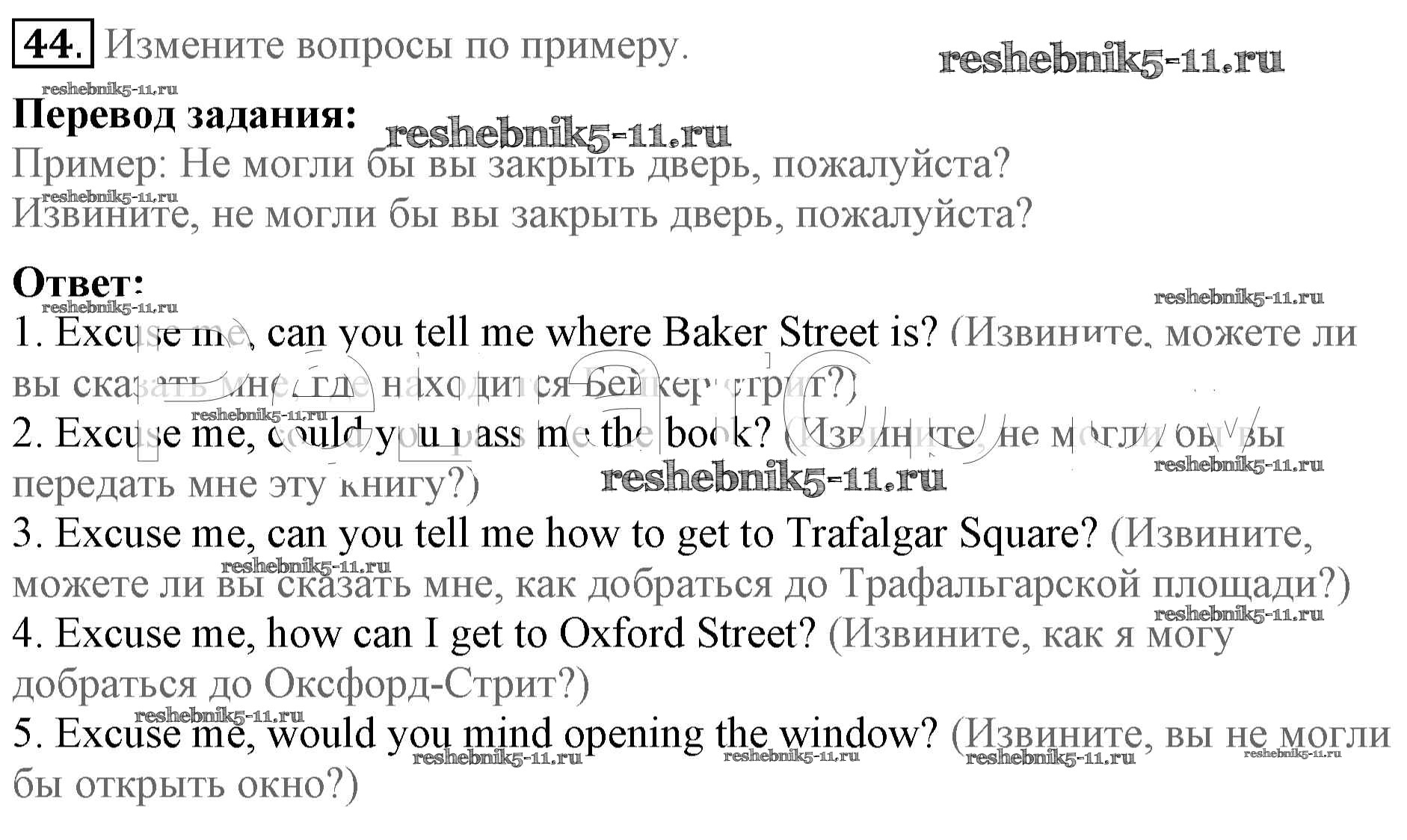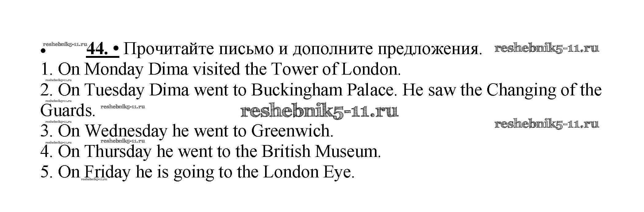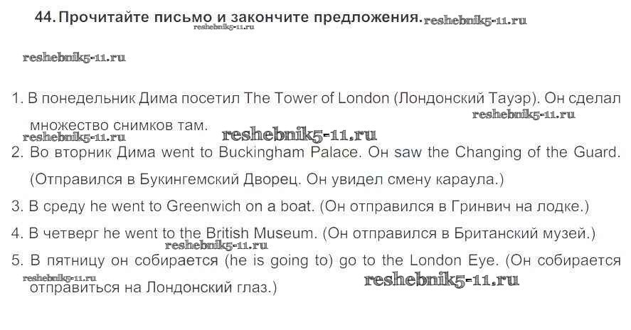 Готовая домашняя работа с ответами по Английскому языку за 5 класс Биболетова, Денисенко, Трубанева Учебник Enjoy English Титул 2015 ФГОС - Unit 3. Faces of London 44