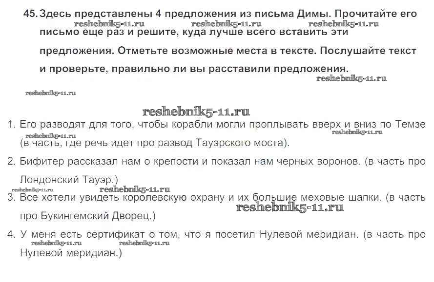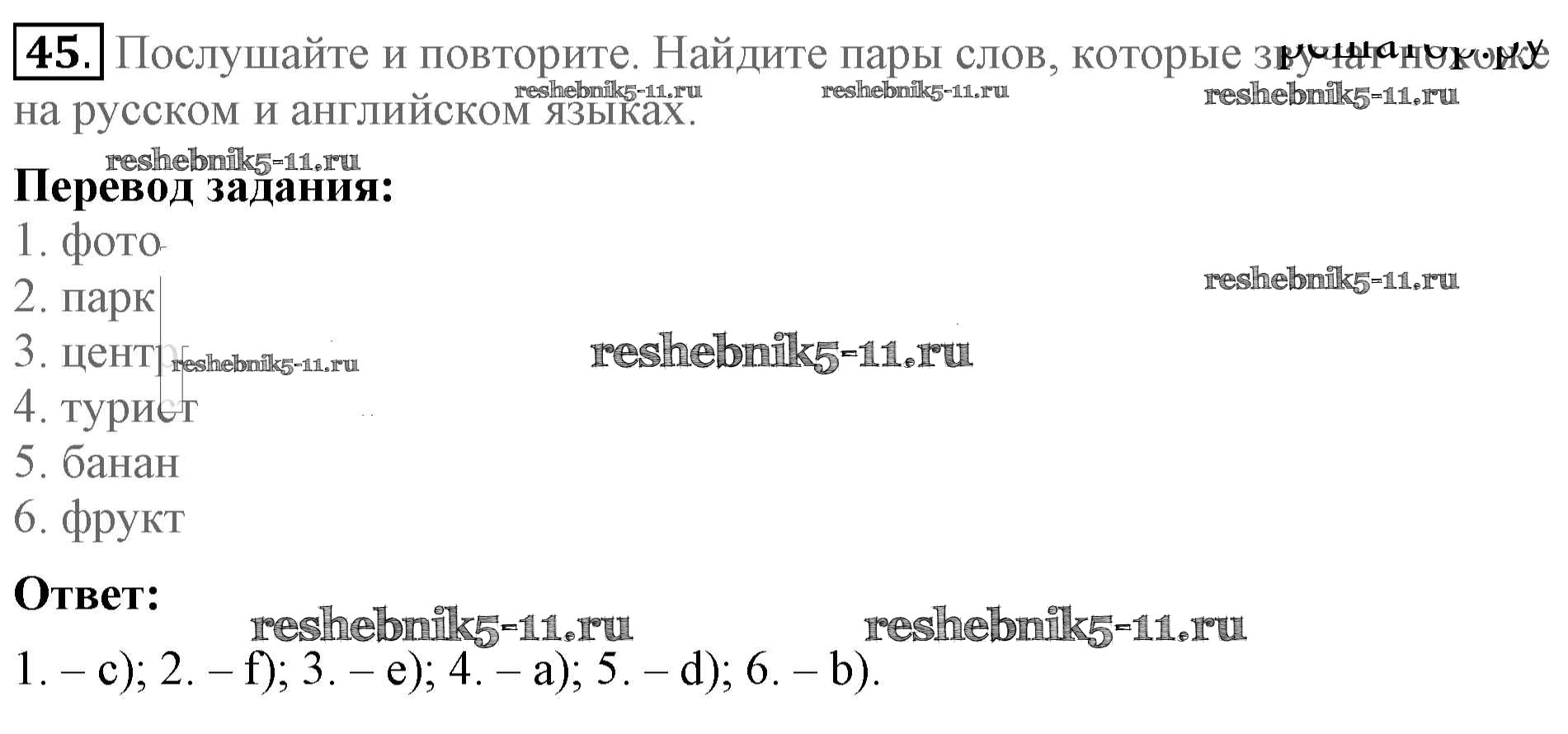 Готовая домашняя работа с ответами по Английскому языку за 5 класс Биболетова, Денисенко, Трубанева Учебник Enjoy English Титул 2015 ФГОС - Unit 3. Faces of London 45