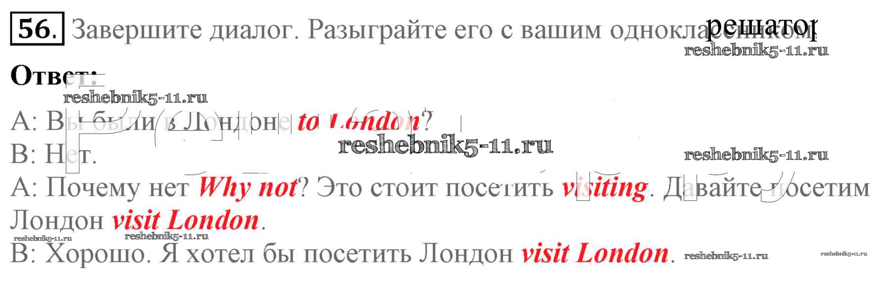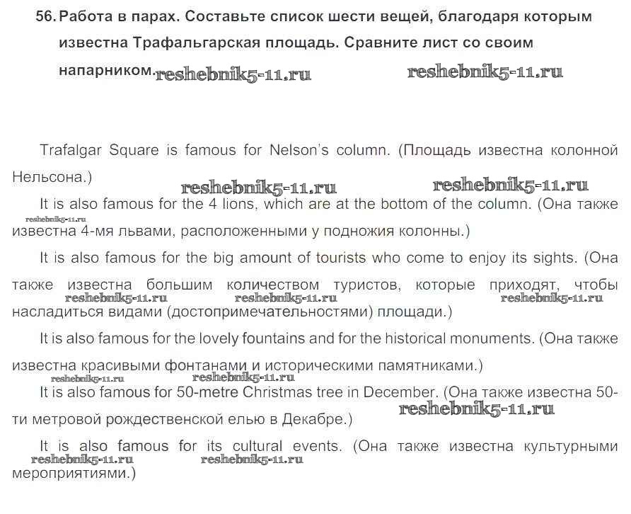 Готовая домашняя работа с ответами по Английскому языку за 5 класс Биболетова, Денисенко, Трубанева Учебник Enjoy English Титул 2015 ФГОС - Unit 3. Faces of London 56
