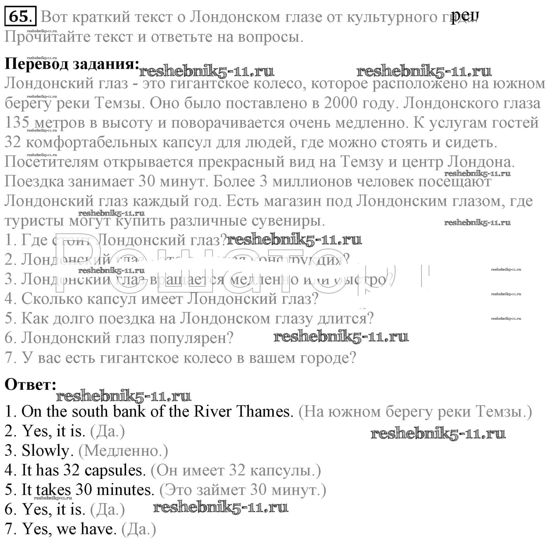 Готовая домашняя работа с ответами по Английскому языку за 5 класс Биболетова, Денисенко, Трубанева Учебник Enjoy English Титул 2015 ФГОС - Unit 3. Faces of London 65