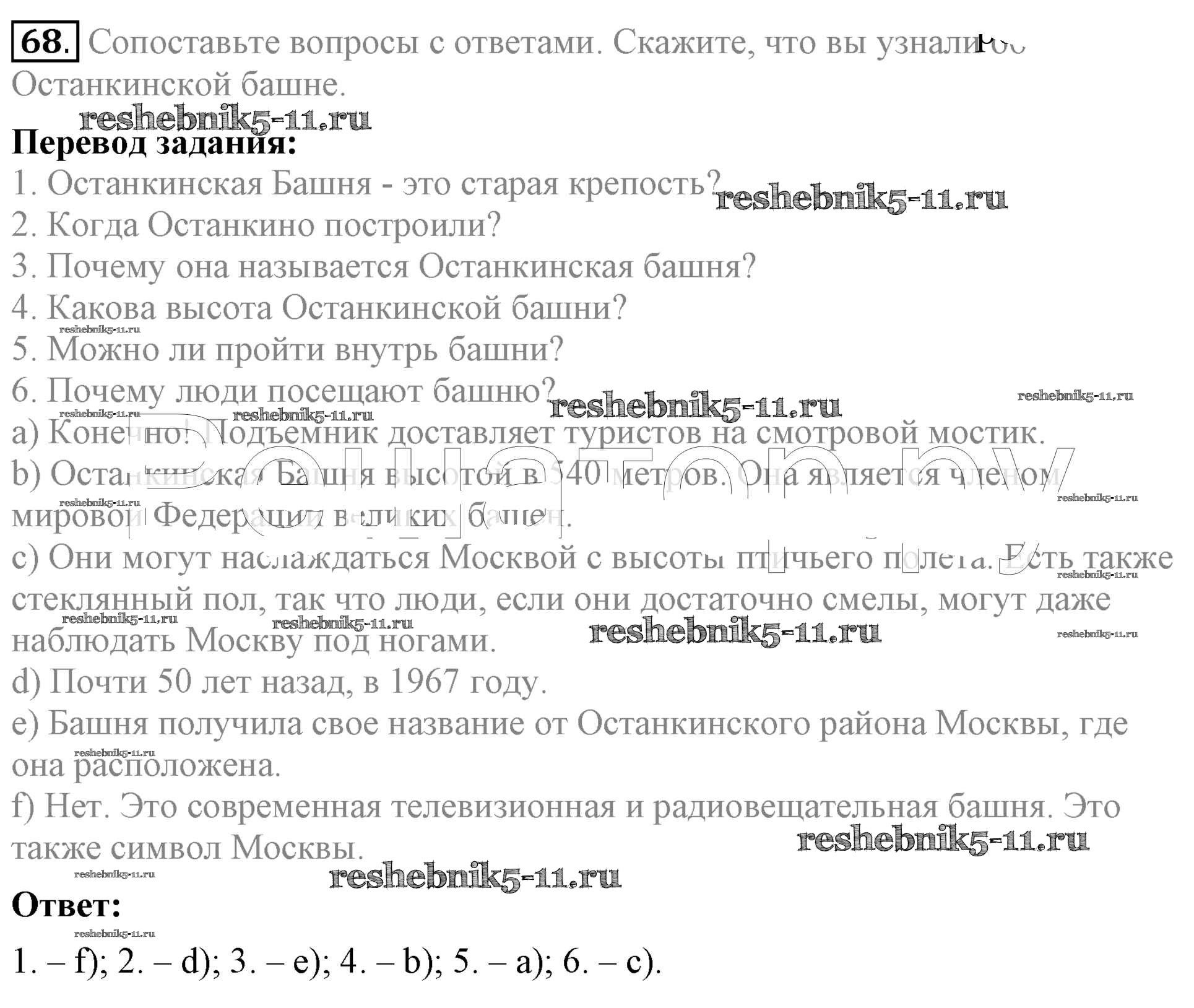 Готовая домашняя работа с ответами по Английскому языку за 5 класс Биболетова, Денисенко, Трубанева Учебник Enjoy English Титул 2015 ФГОС - Unit 3. Faces of London 68