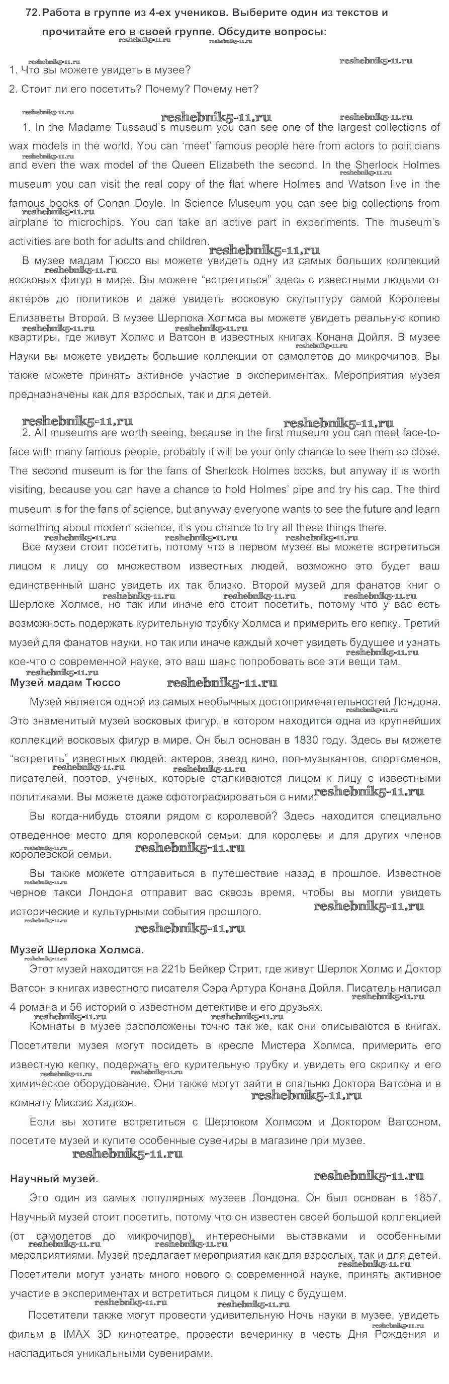 Готовая домашняя работа с ответами по Английскому языку за 5 класс Биболетова, Денисенко, Трубанева Учебник Enjoy English Титул 2015 ФГОС - Unit 3. Faces of London 72