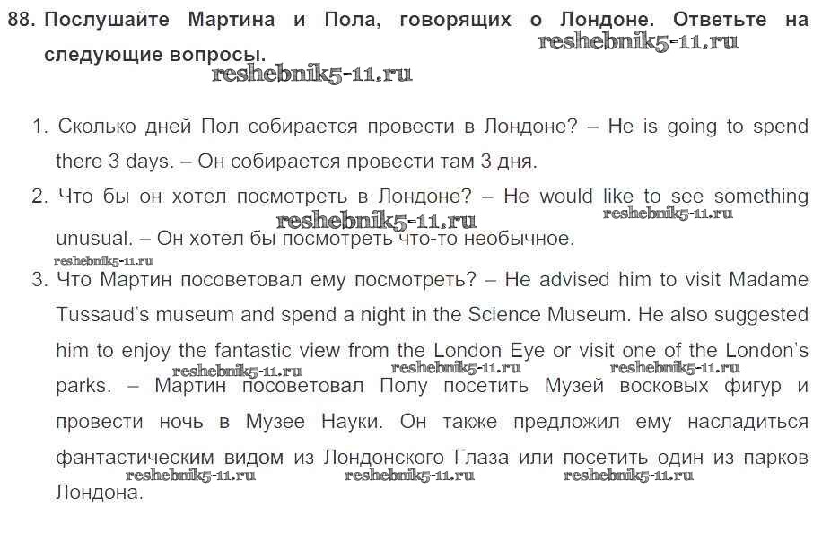 Готовая домашняя работа с ответами по Английскому языку за 5 класс Биболетова, Денисенко, Трубанева Учебник Enjoy English Титул 2015 ФГОС - Unit 3. Faces of London 88