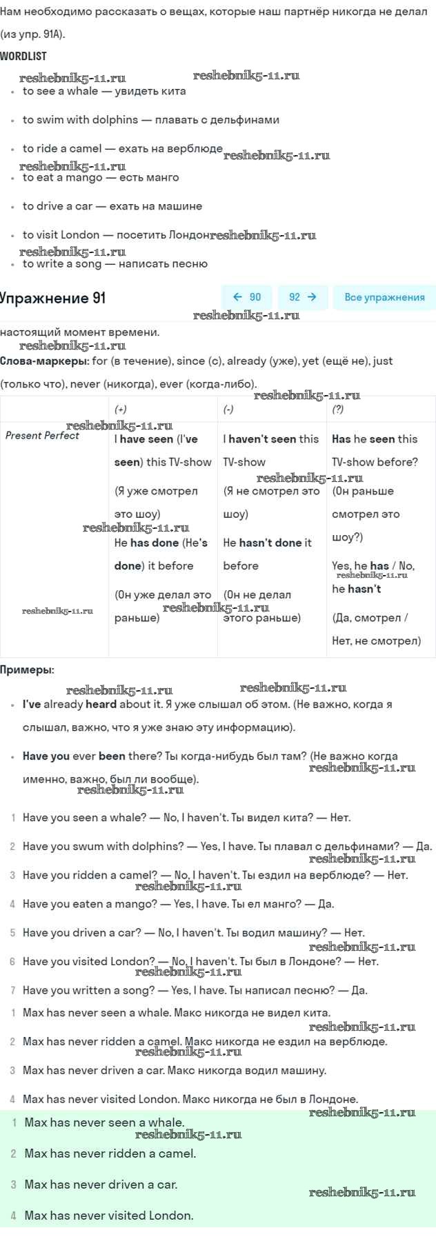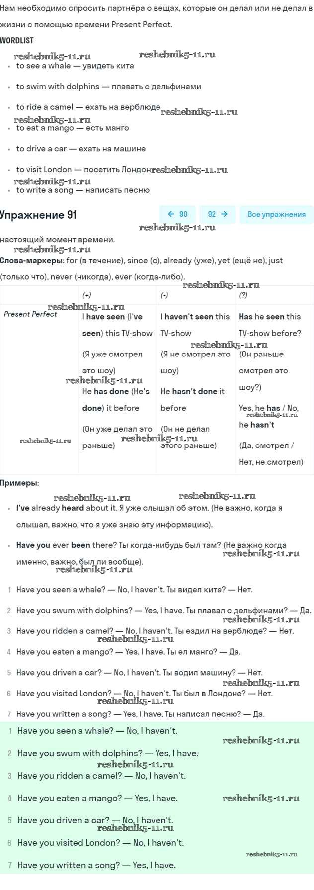 Решебник 1 / unit 3 / 91