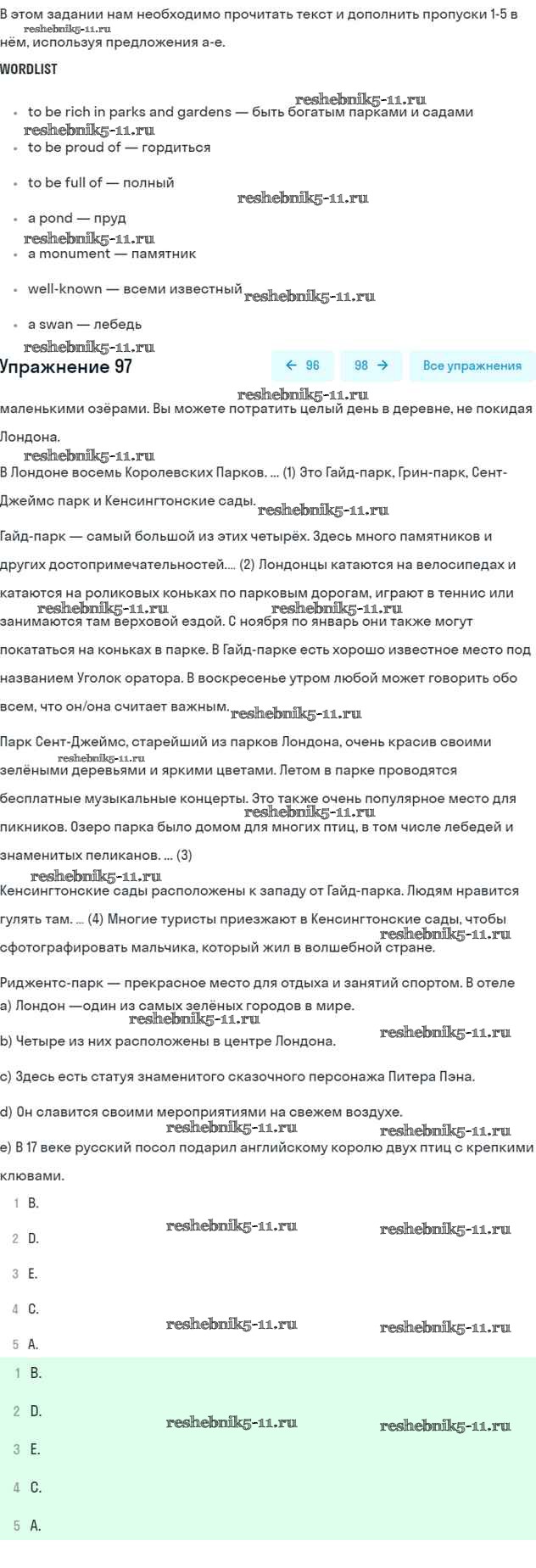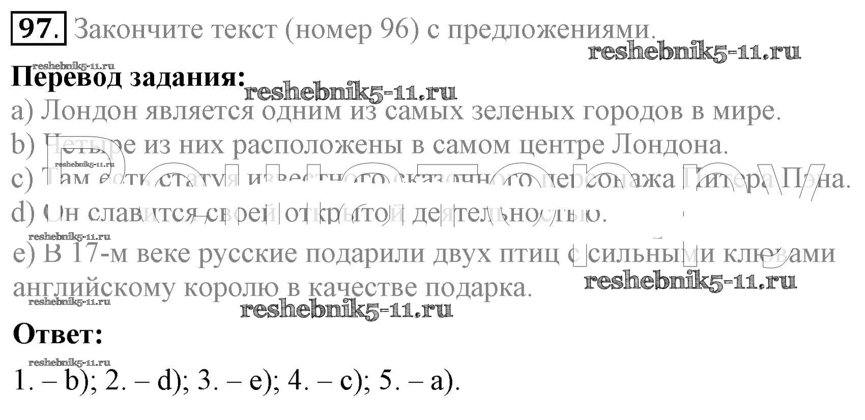 Готовая домашняя работа с ответами по Английскому языку за 5 класс Биболетова, Денисенко, Трубанева Учебник Enjoy English Титул 2015 ФГОС - Unit 3. Faces of London 97