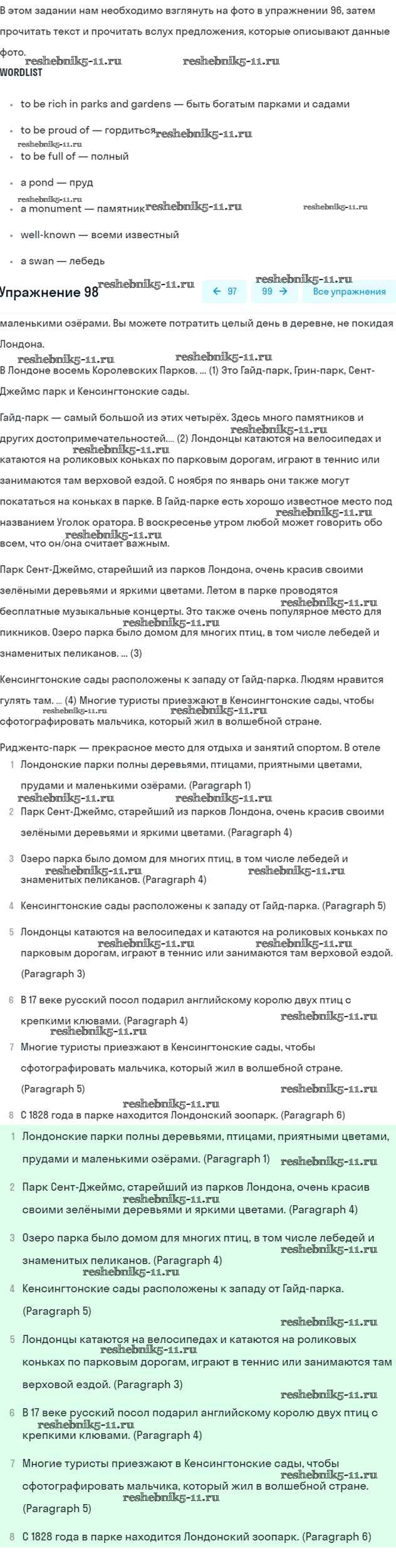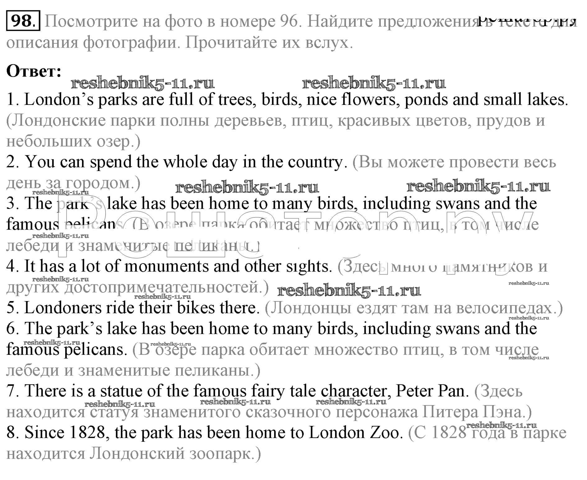 Готовая домашняя работа с ответами по Английскому языку за 5 класс Биболетова, Денисенко, Трубанева Учебник Enjoy English Титул 2015 ФГОС - Unit 3. Faces of London 98