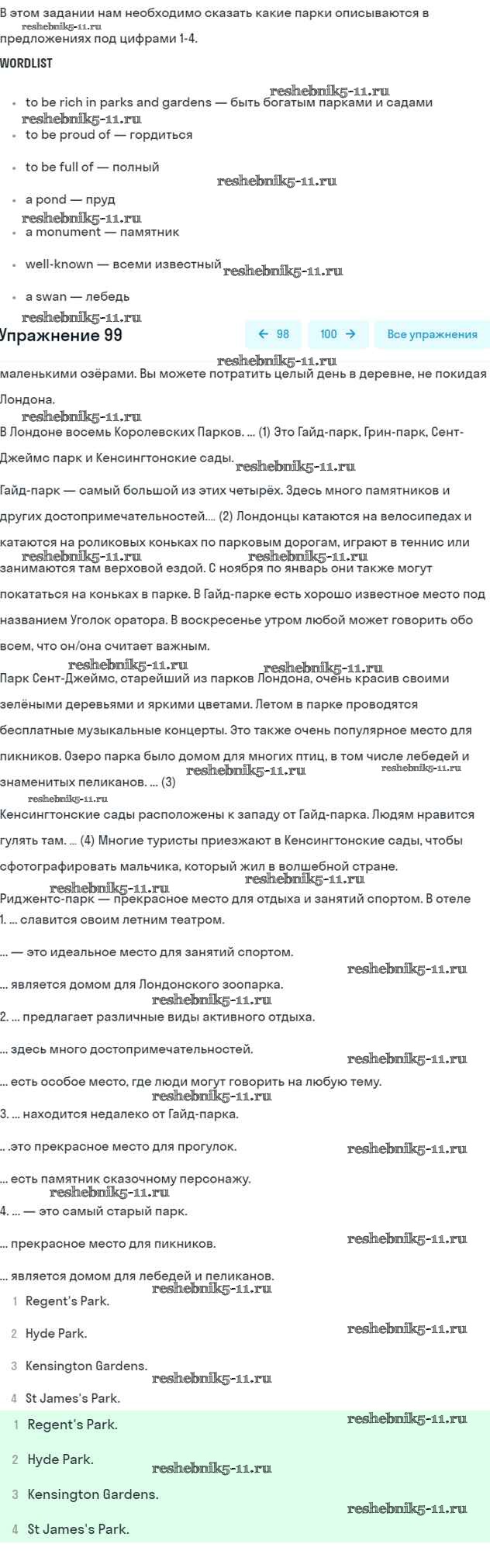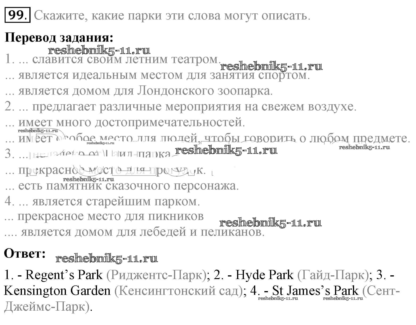 Готовая домашняя работа с ответами по Английскому языку за 5 класс Биболетова, Денисенко, Трубанева Учебник Enjoy English Титул 2015 ФГОС - Unit 3. Faces of London 99