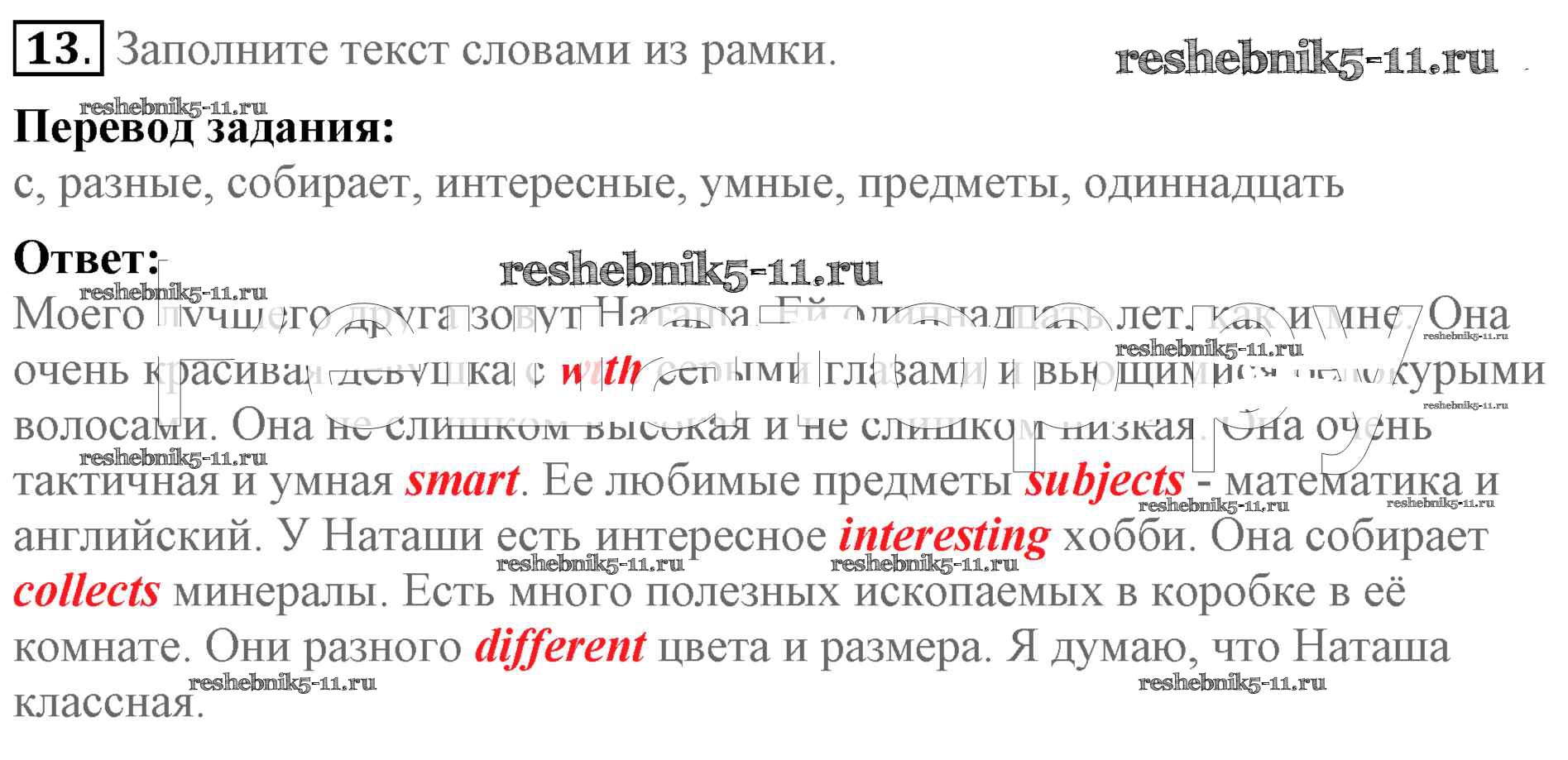 Готовая домашняя работа с ответами по Английскому языку за 5 класс Биболетова, Денисенко, Трубанева Учебник Enjoy English Титул 2015 ФГОС - Домашняя работа 13