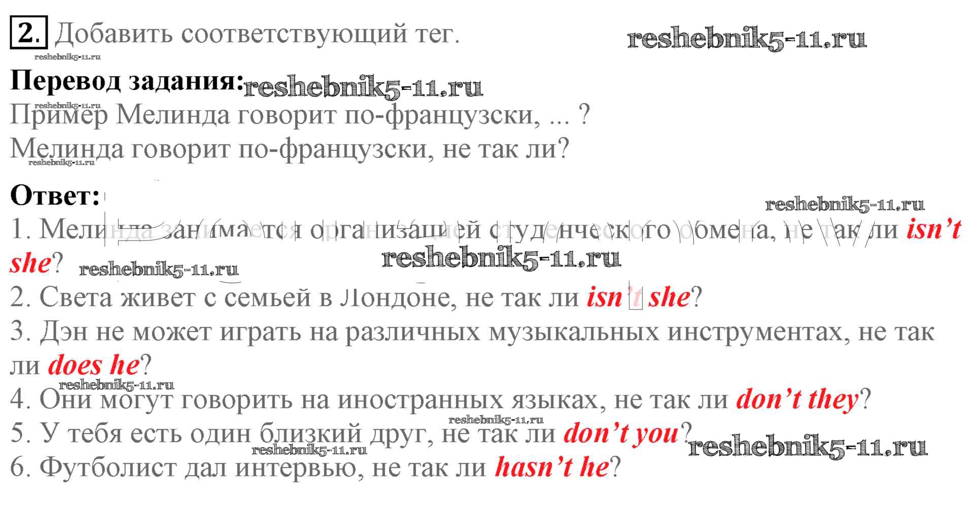 Готовая домашняя работа с ответами по Английскому языку за 5 класс Биболетова, Денисенко, Трубанева Учебник Enjoy English Титул 2015 ФГОС - Домашняя работа 2