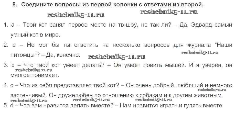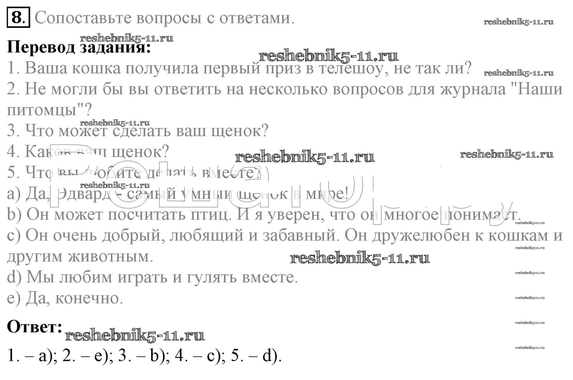 Готовая домашняя работа с ответами по Английскому языку за 5 класс Биболетова, Денисенко, Трубанева Учебник Enjoy English Титул 2015 ФГОС - Домашняя работа 8