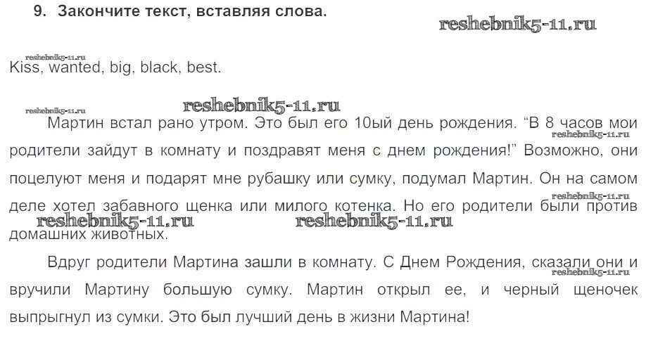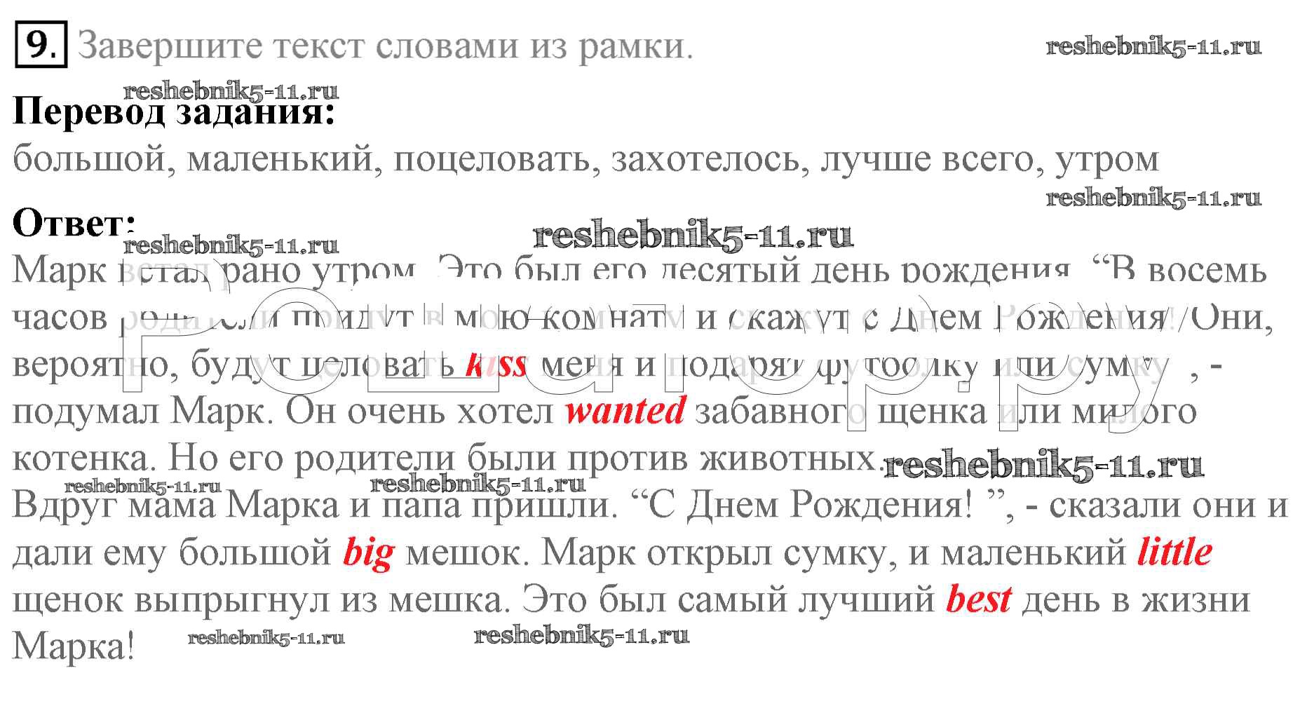 Готовая домашняя работа с ответами по Английскому языку за 5 класс Биболетова, Денисенко, Трубанева Учебник Enjoy English Титул 2015 ФГОС - Домашняя работа 9