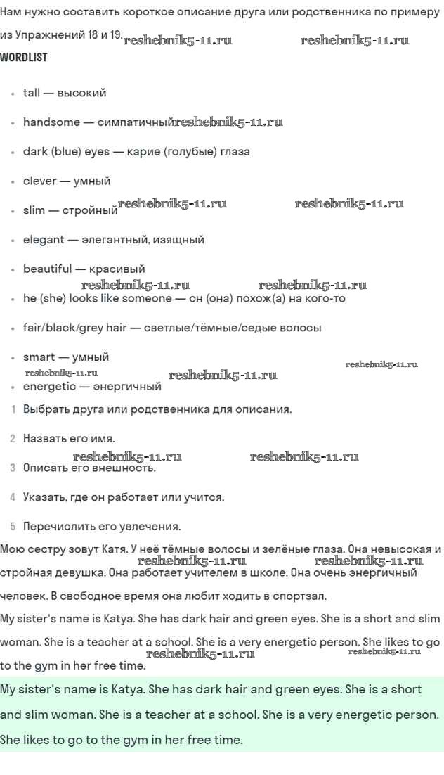 Готовая домашняя работа с ответами по Английскому языку за 5 класс Биболетова, Денисенко, Трубанева Учебник Enjoy English Титул 2015 ФГОС - Unit 4. Learning more about each other 21