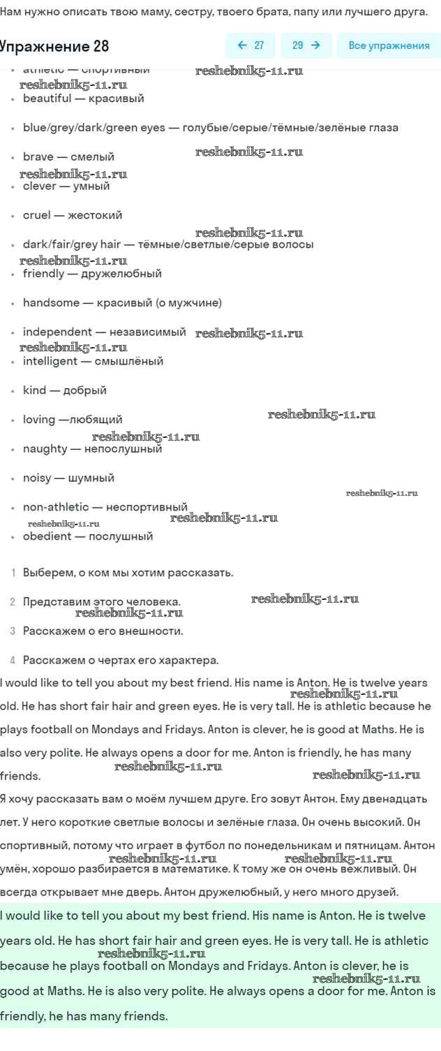 Готовая домашняя работа с ответами по Английскому языку за 5 класс Биболетова, Денисенко, Трубанева Учебник Enjoy English Титул 2015 ФГОС - Unit 4. Learning more about each other 28