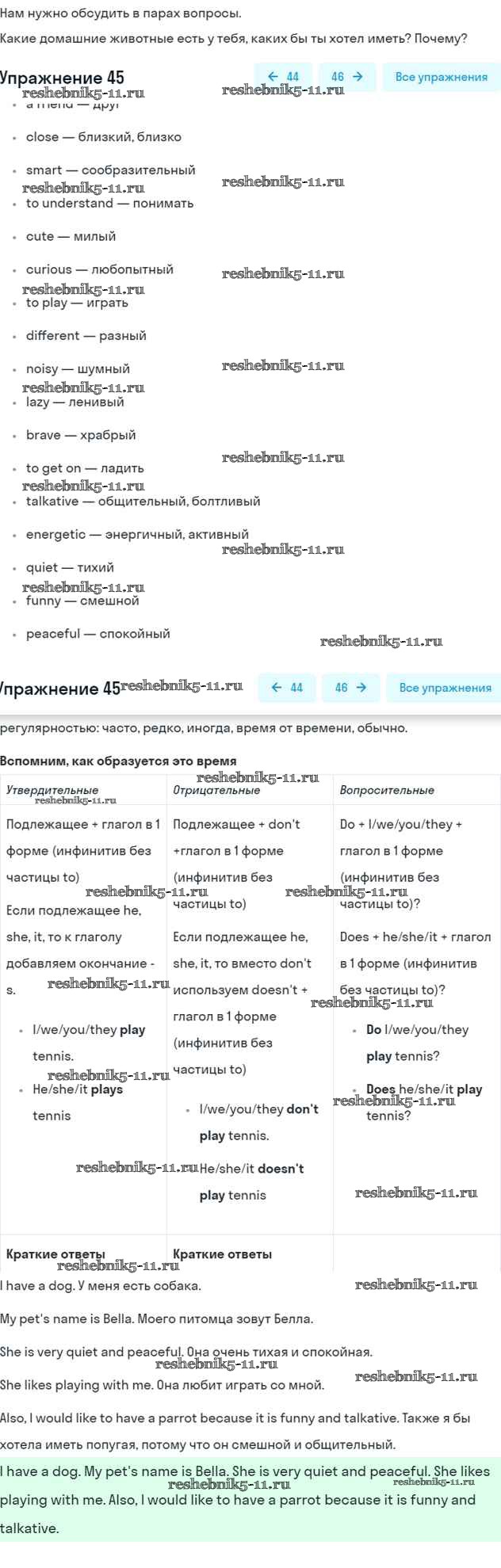 Готовая домашняя работа с ответами по Английскому языку за 5 класс Биболетова, Денисенко, Трубанева Учебник Enjoy English Титул 2015 ФГОС - Unit 4. Learning more about each other 45