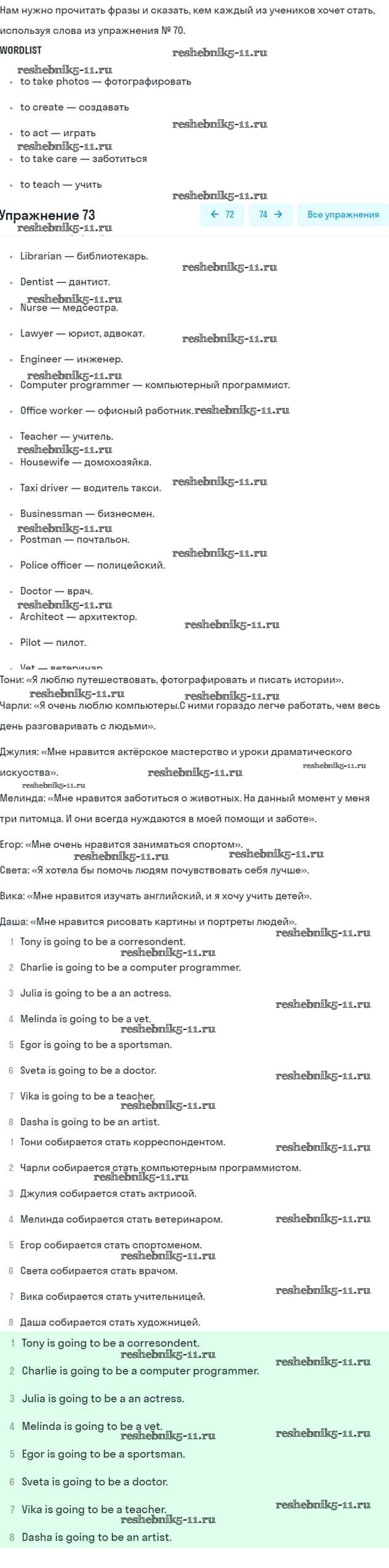 Решебник 1 / unit 4 / 73