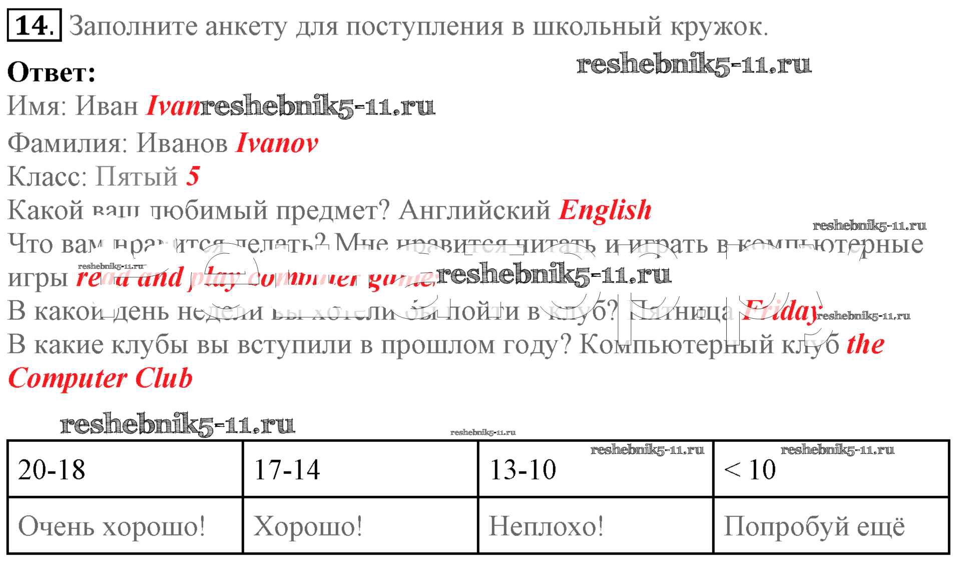 Готовая домашняя работа с ответами по Английскому языку за 5 класс Биболетова, Денисенко, Трубанева Учебник Enjoy English Титул 2015 ФГОС - Проверка знаний 14
