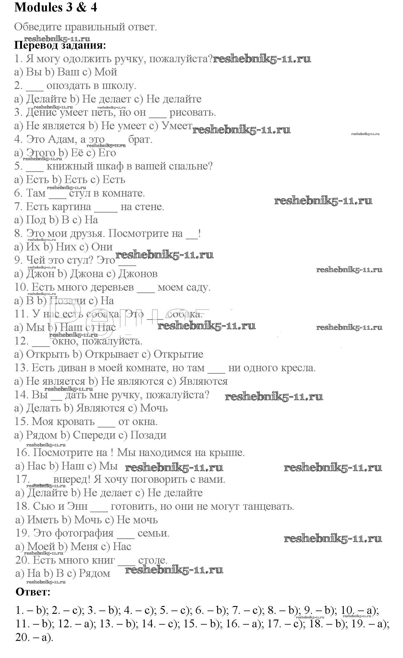 Готовая домашняя работа с ответами по Английскому языку за 5 класс Ваулина, Дули, Подоляко, Эванск Рабочая тетрадь Spotlight Просвещение 2016 ФГОС - Модули 3-4