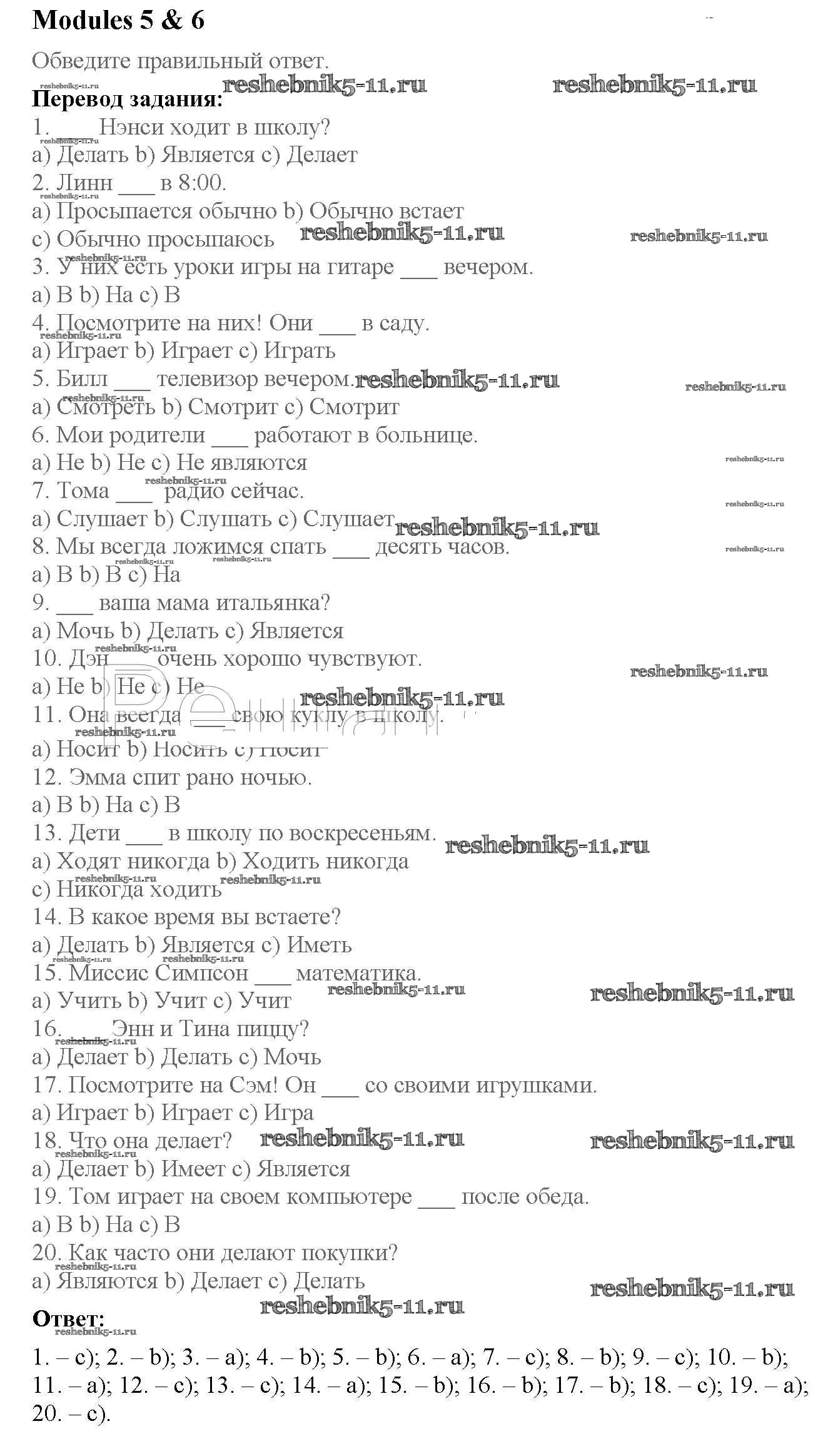 Готовая домашняя работа с ответами по Английскому языку за 5 класс Ваулина, Дули, Подоляко, Эванск Рабочая тетрадь Spotlight Просвещение 2016 ФГОС - Модули 5-6