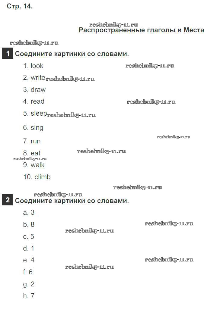 Готовая домашняя работа с ответами по Английскому языку за 5 класс Ваулина, Дули, Подоляко, Эванск Рабочая тетрадь Spotlight Просвещение 2016 ФГОС - Страницы 14