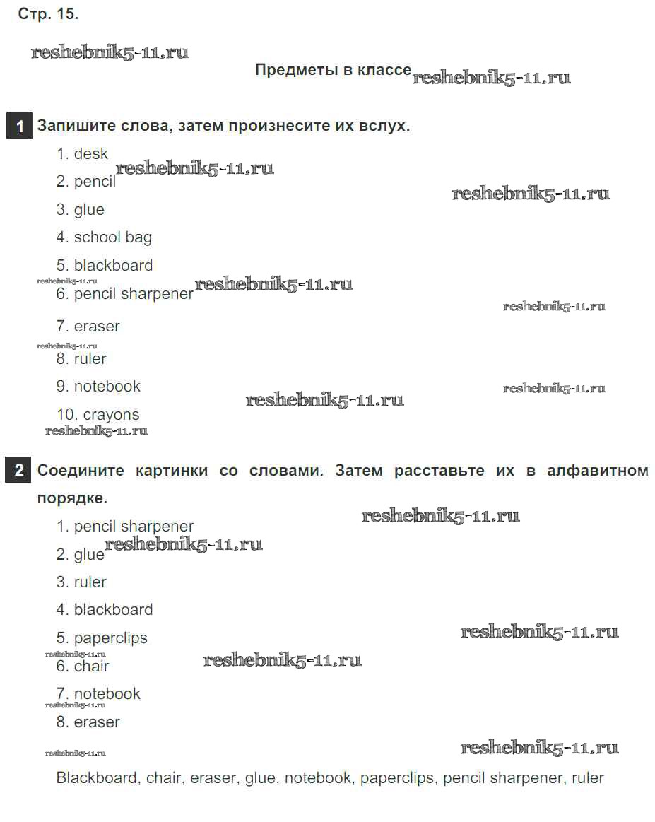 Готовая домашняя работа с ответами по Английскому языку за 5 класс Ваулина, Дули, Подоляко, Эванск Рабочая тетрадь Spotlight Просвещение 2016 ФГОС - Страницы 15