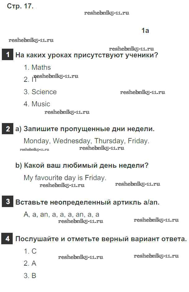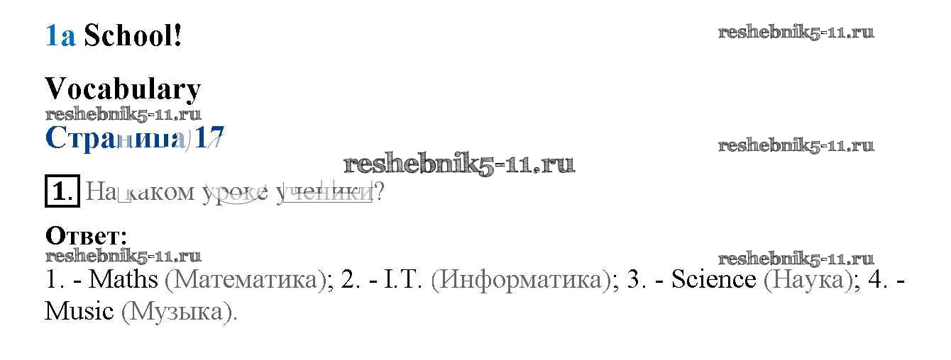 Готовая домашняя работа с ответами по Английскому языку за 5 класс Ваулина, Дули, Подоляко, Эванск Рабочая тетрадь Spotlight Просвещение 2016 ФГОС - Страницы 17