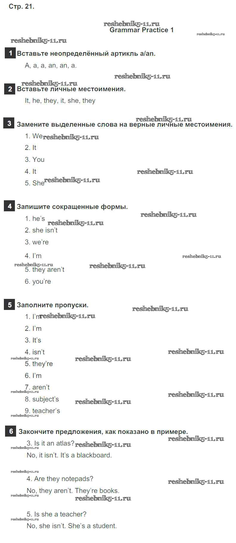 Готовая домашняя работа с ответами по Английскому языку за 5 класс Ваулина, Дули, Подоляко, Эванск Рабочая тетрадь Spotlight Просвещение 2016 ФГОС - Страницы 21