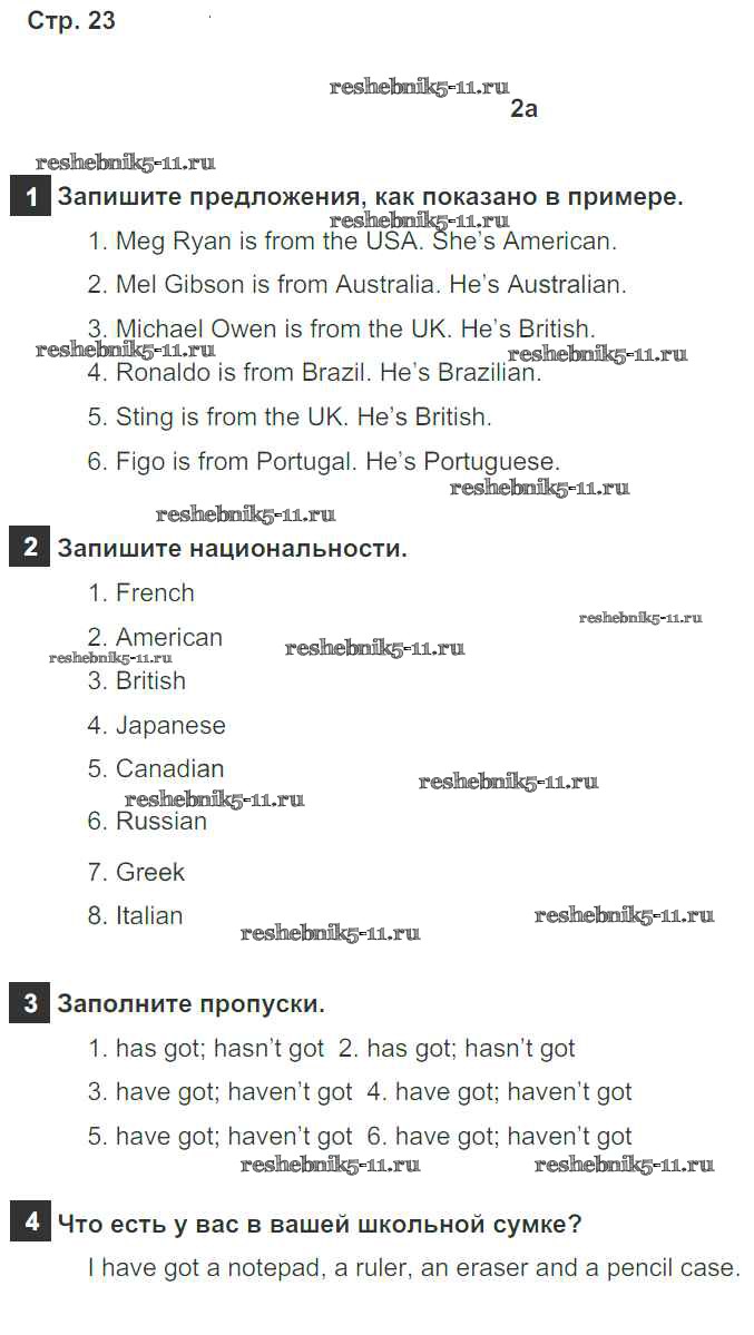 Готовая домашняя работа с ответами по Английскому языку за 5 класс Ваулина, Дули, Подоляко, Эванск Рабочая тетрадь Spotlight Просвещение 2016 ФГОС - Страницы 23