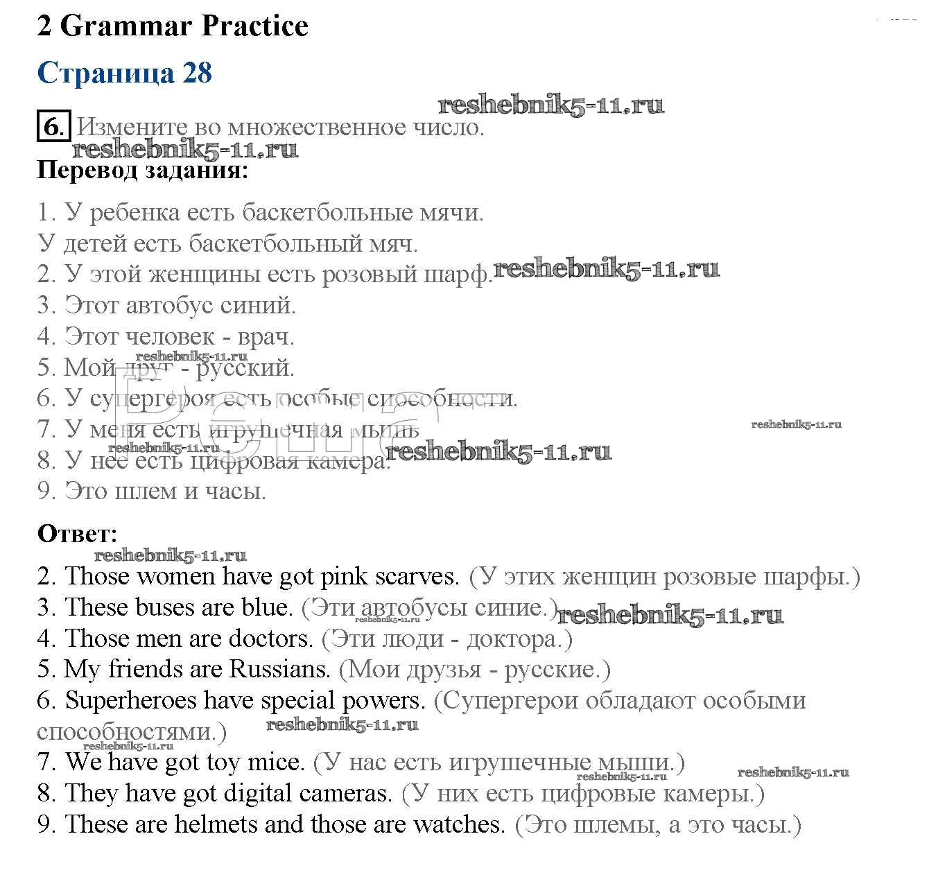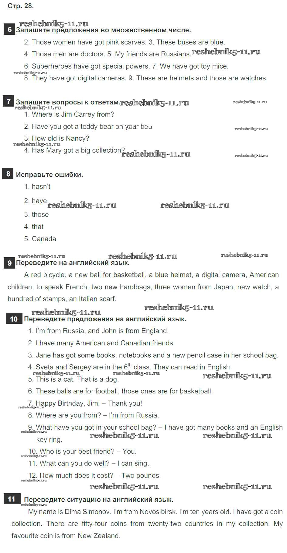 Готовая домашняя работа с ответами по Английскому языку за 5 класс Ваулина, Дули, Подоляко, Эванск Рабочая тетрадь Spotlight Просвещение 2016 ФГОС - Страницы 28