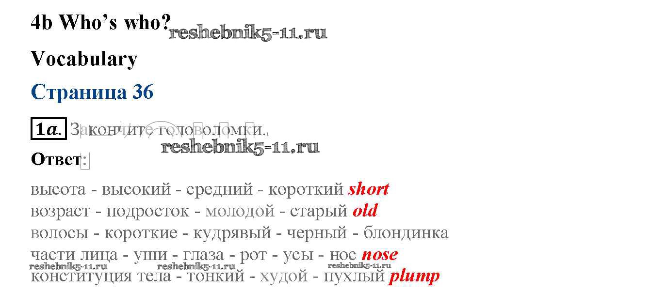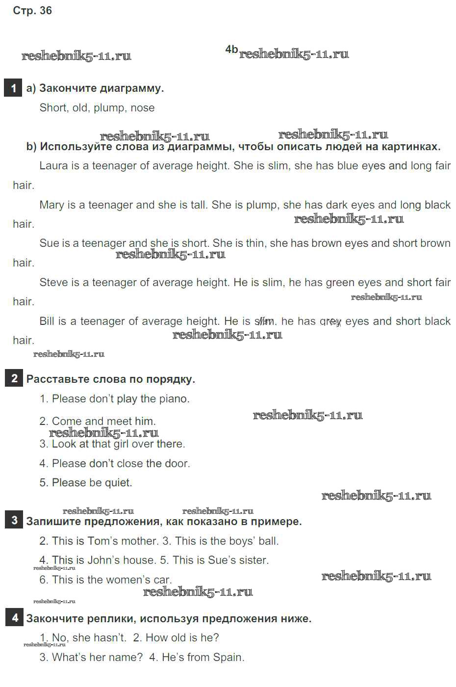 Готовая домашняя работа с ответами по Английскому языку за 5 класс Ваулина, Дули, Подоляко, Эванск Рабочая тетрадь Spotlight Просвещение 2016 ФГОС - Страницы 36