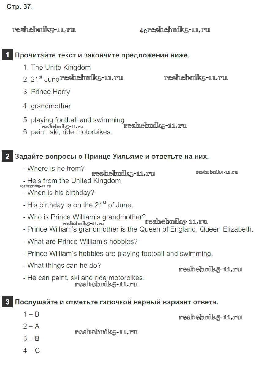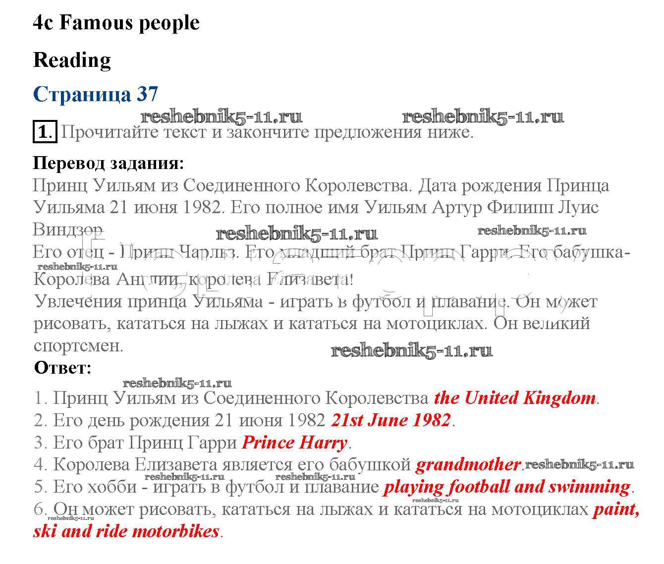 Готовая домашняя работа с ответами по Английскому языку за 5 класс Ваулина, Дули, Подоляко, Эванск Рабочая тетрадь Spotlight Просвещение 2016 ФГОС - Страницы 37