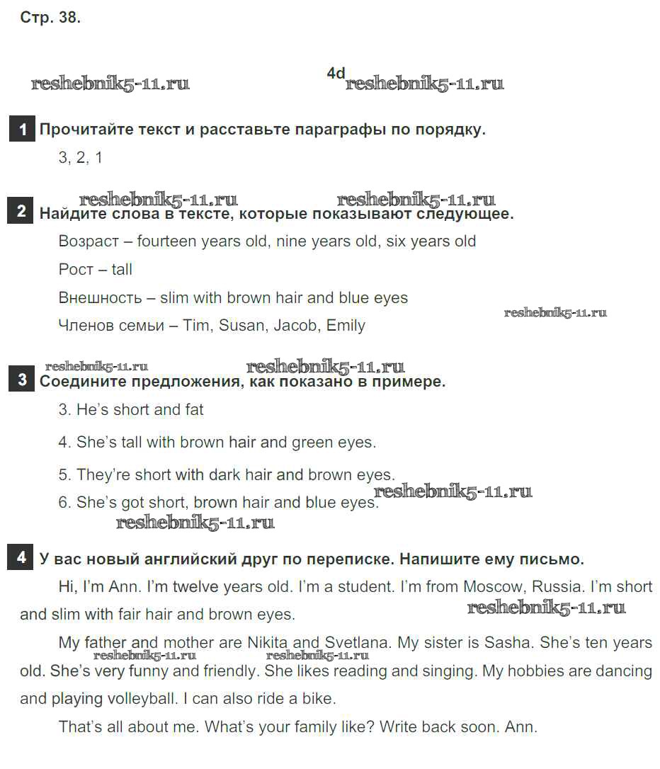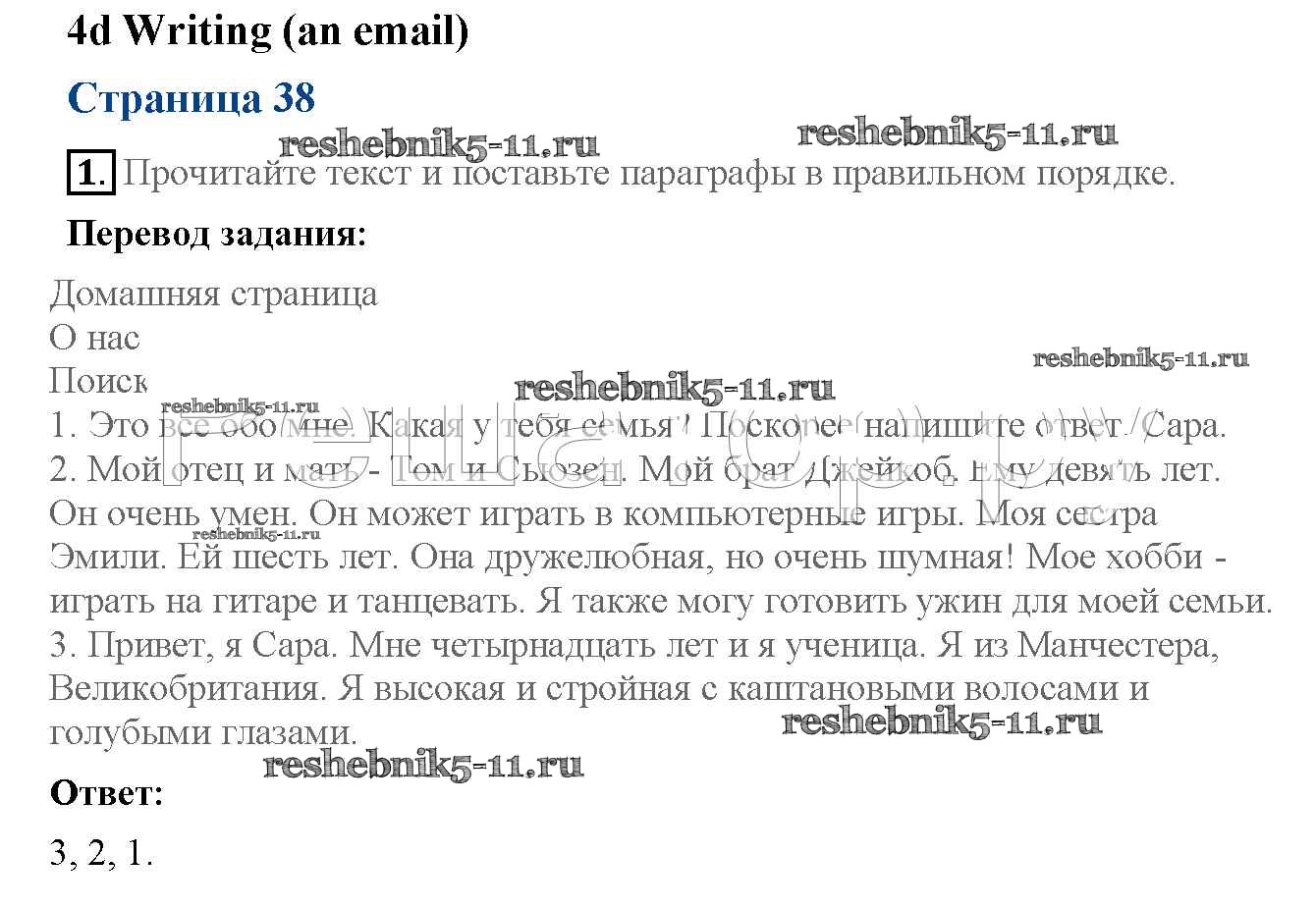 Готовая домашняя работа с ответами по Английскому языку за 5 класс Ваулина, Дули, Подоляко, Эванск Рабочая тетрадь Spotlight Просвещение 2016 ФГОС - Страницы 38