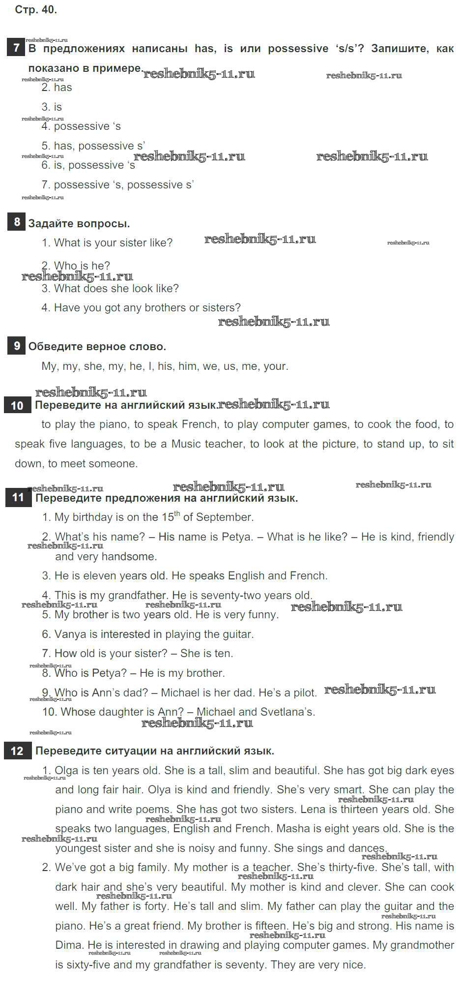 Готовая домашняя работа с ответами по Английскому языку за 5 класс Ваулина, Дули, Подоляко, Эванск Рабочая тетрадь Spotlight Просвещение 2016 ФГОС - Страницы 40