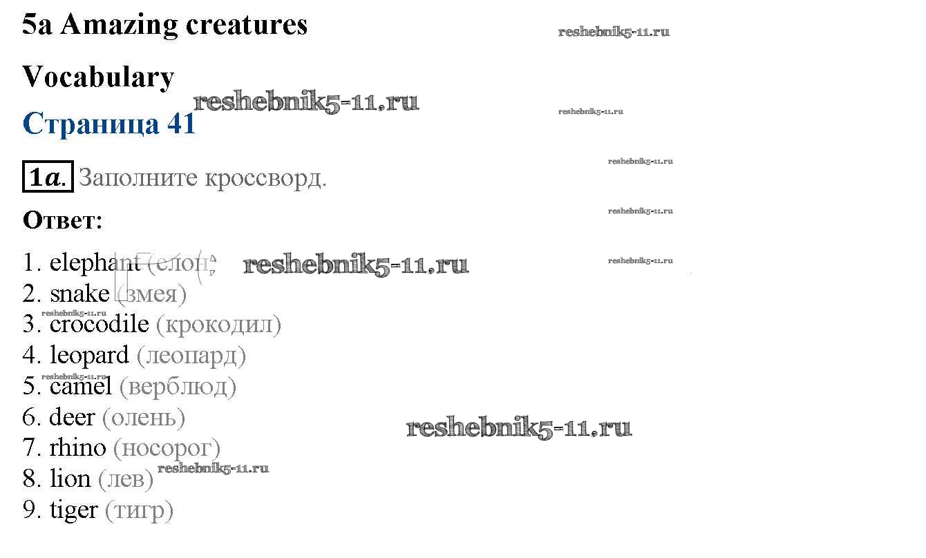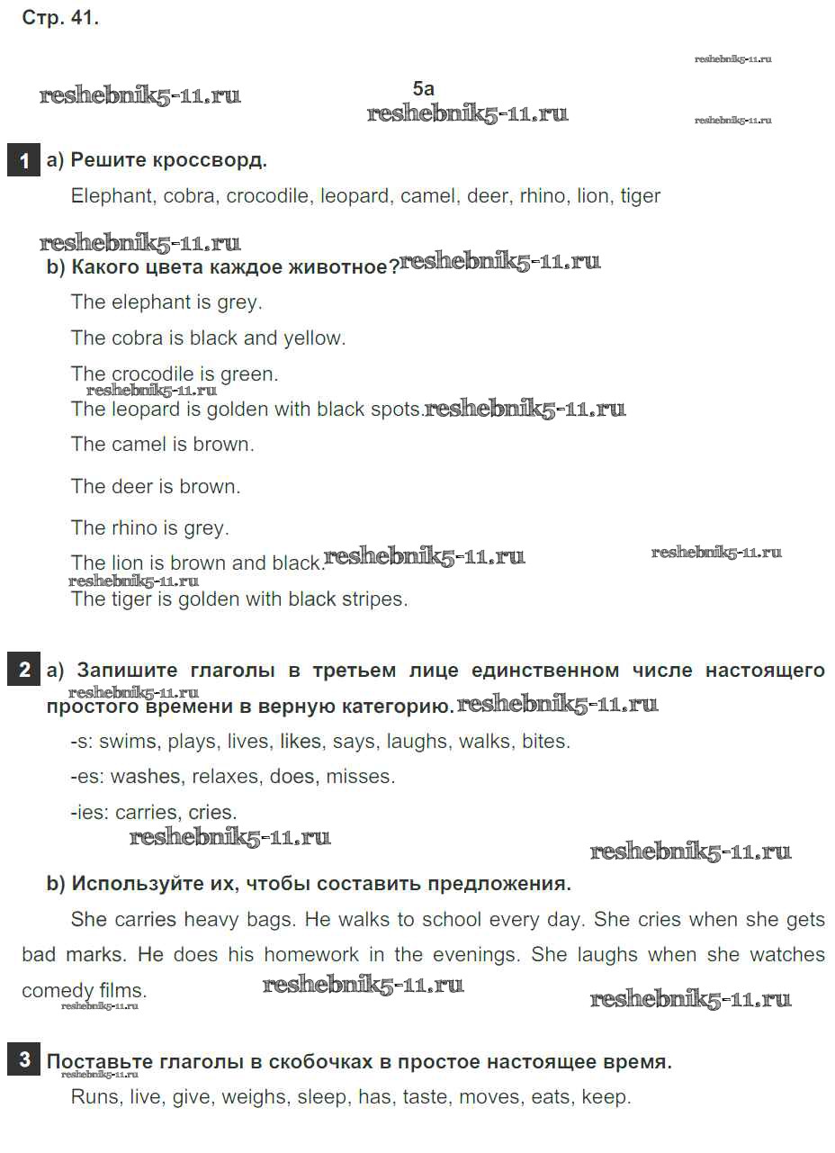 Готовая домашняя работа с ответами по Английскому языку за 5 класс Ваулина, Дули, Подоляко, Эванск Рабочая тетрадь Spotlight Просвещение 2016 ФГОС - Страницы 41