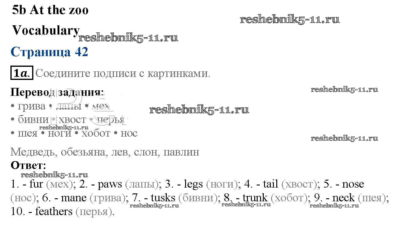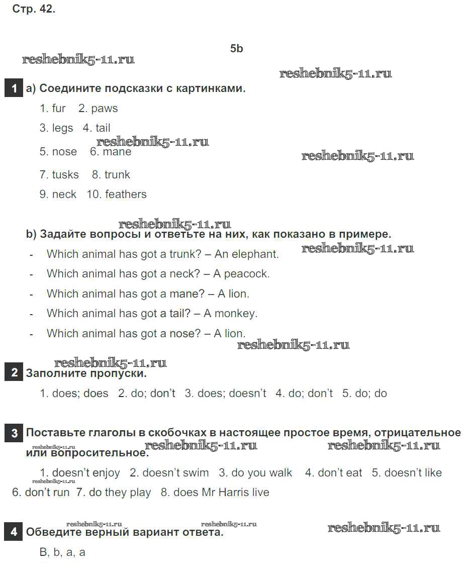 Готовая домашняя работа с ответами по Английскому языку за 5 класс Ваулина, Дули, Подоляко, Эванск Рабочая тетрадь Spotlight Просвещение 2016 ФГОС - Страницы 42