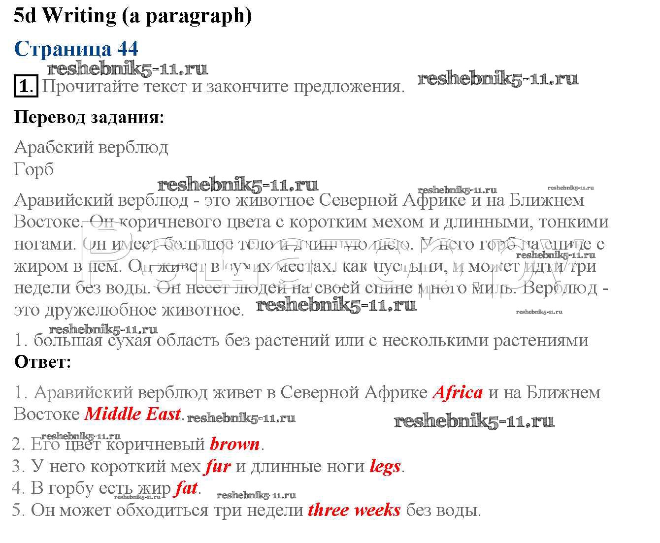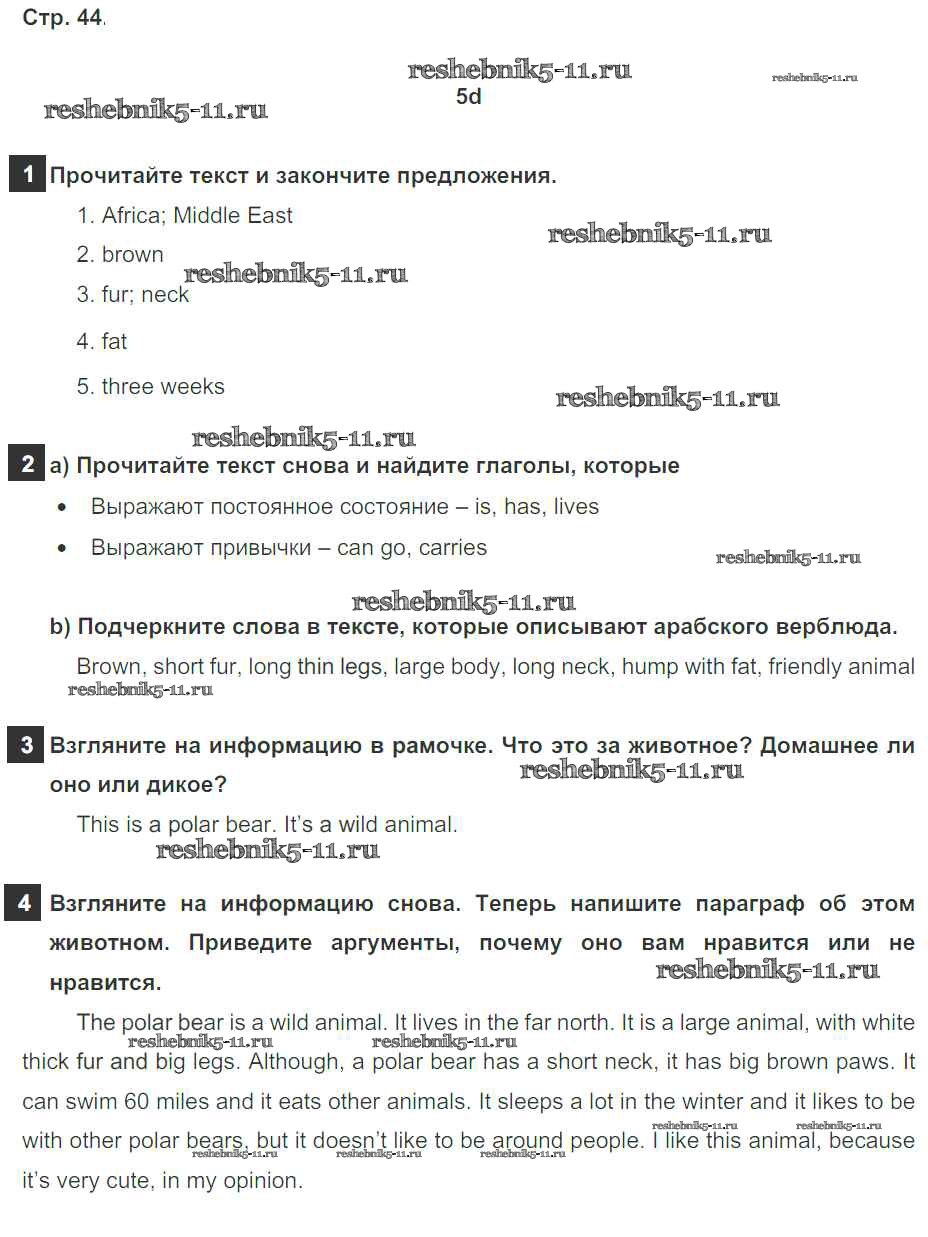 Готовая домашняя работа с ответами по Английскому языку за 5 класс Ваулина, Дули, Подоляко, Эванск Рабочая тетрадь Spotlight Просвещение 2016 ФГОС - Страницы 44
