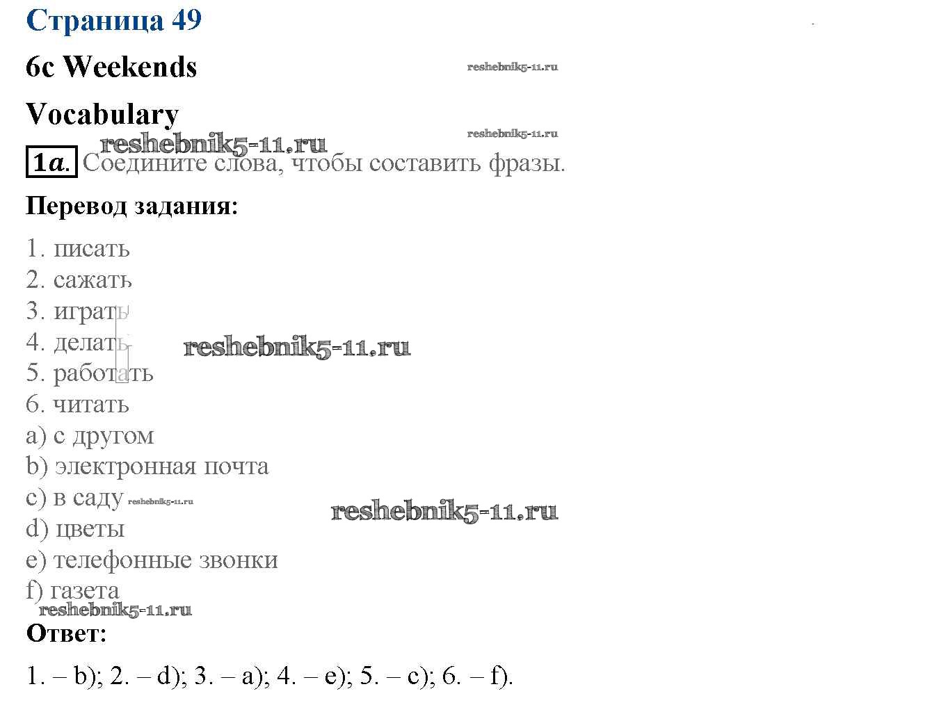 Готовая домашняя работа с ответами по Английскому языку за 5 класс Ваулина, Дули, Подоляко, Эванск Рабочая тетрадь Spotlight Просвещение 2016 ФГОС - Страницы 49
