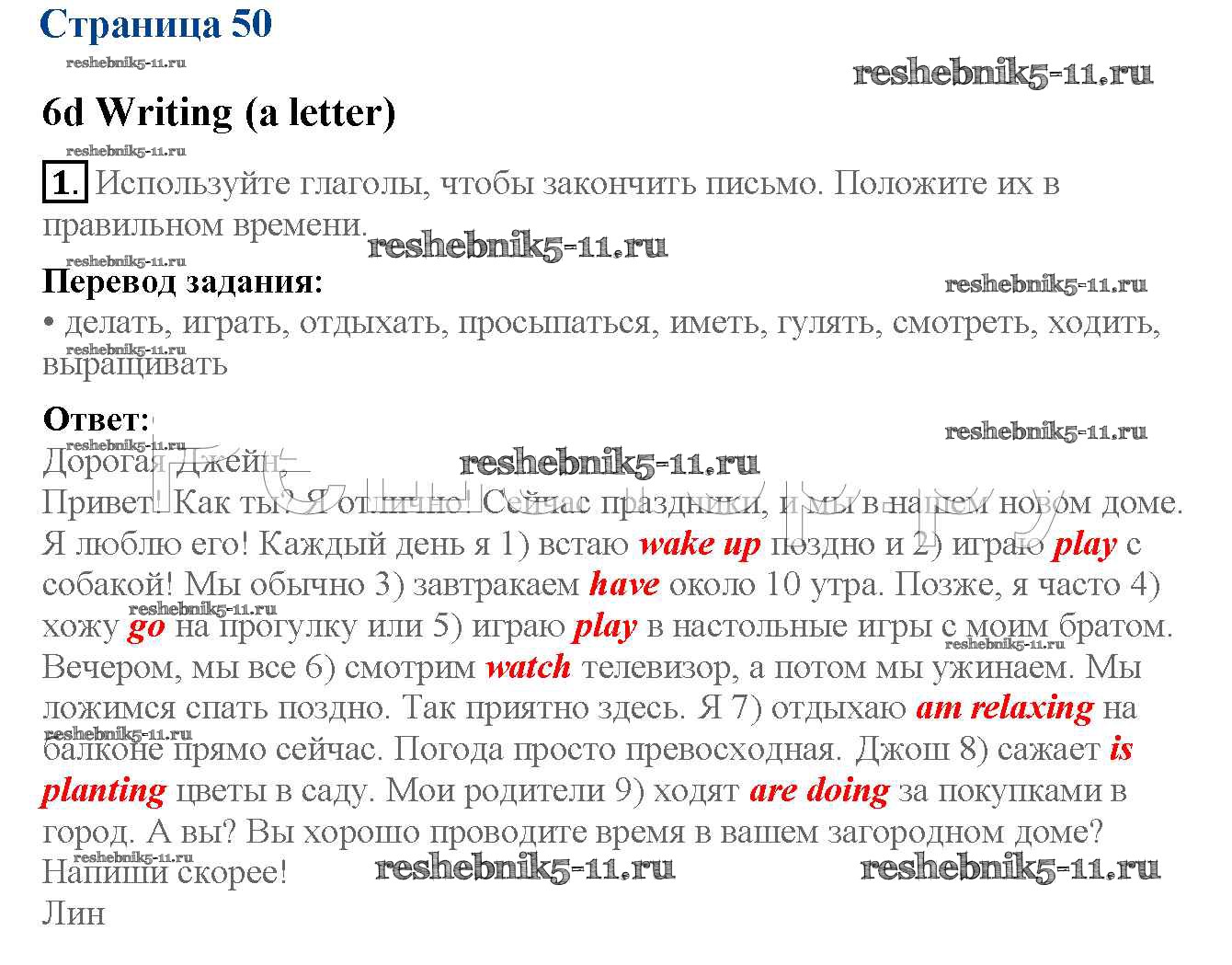 Готовая домашняя работа с ответами по Английскому языку за 5 класс Ваулина, Дули, Подоляко, Эванск Рабочая тетрадь Spotlight Просвещение 2016 ФГОС - Страницы 50