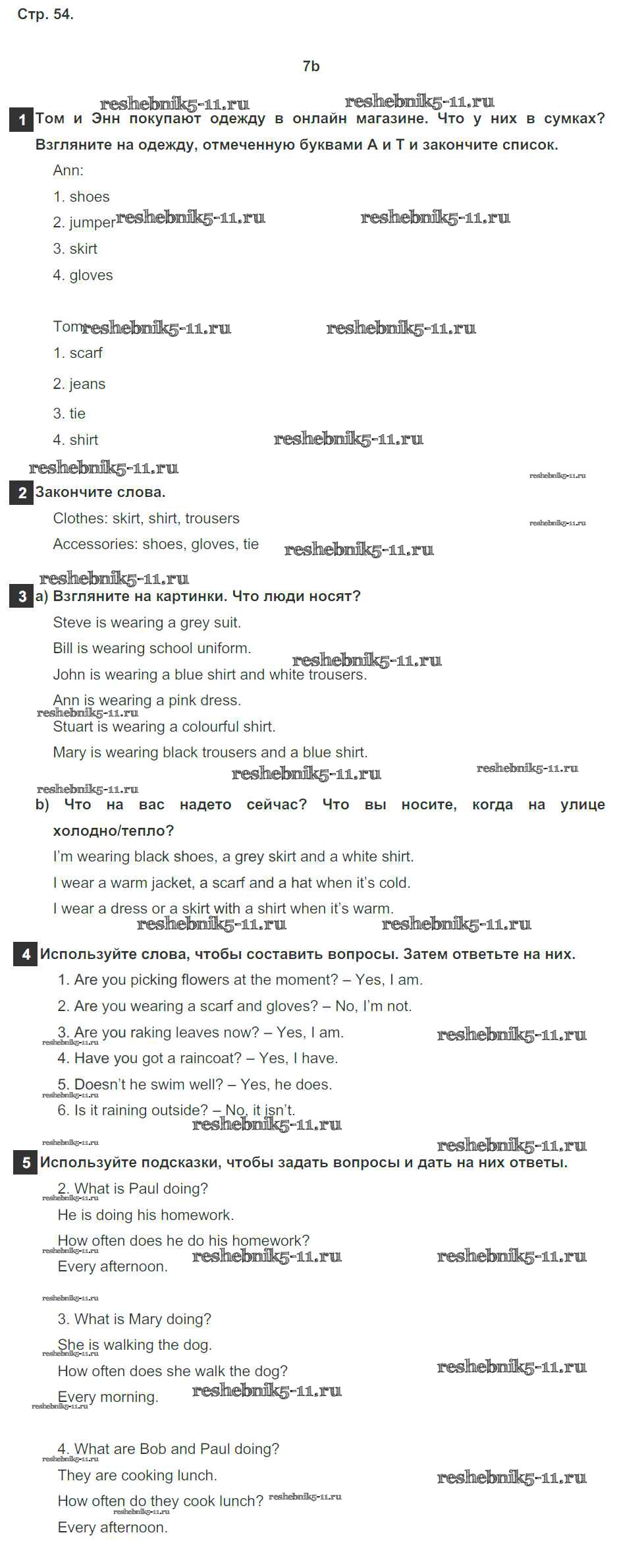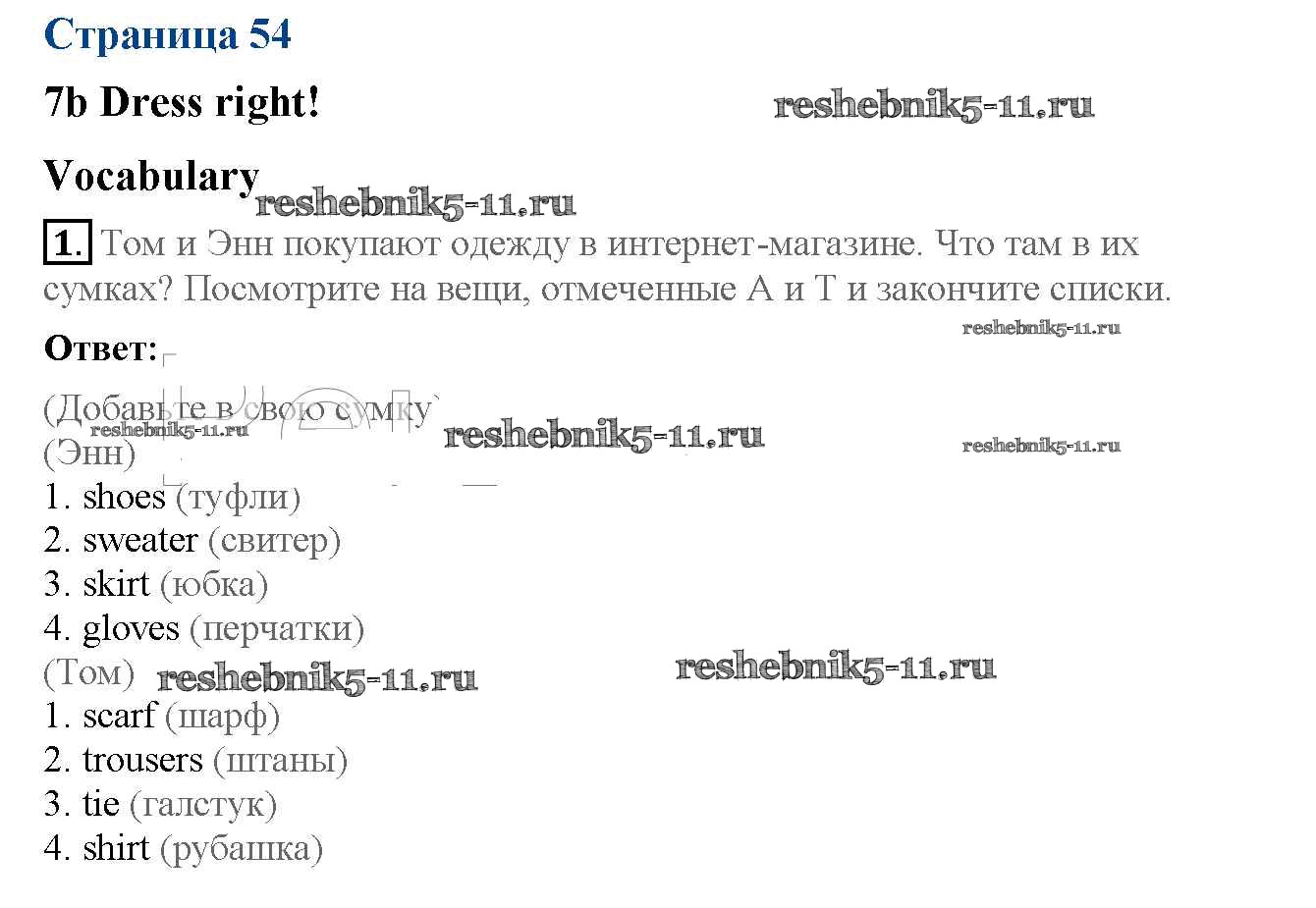Готовая домашняя работа с ответами по Английскому языку за 5 класс Ваулина, Дули, Подоляко, Эванск Рабочая тетрадь Spotlight Просвещение 2016 ФГОС - Страницы 54