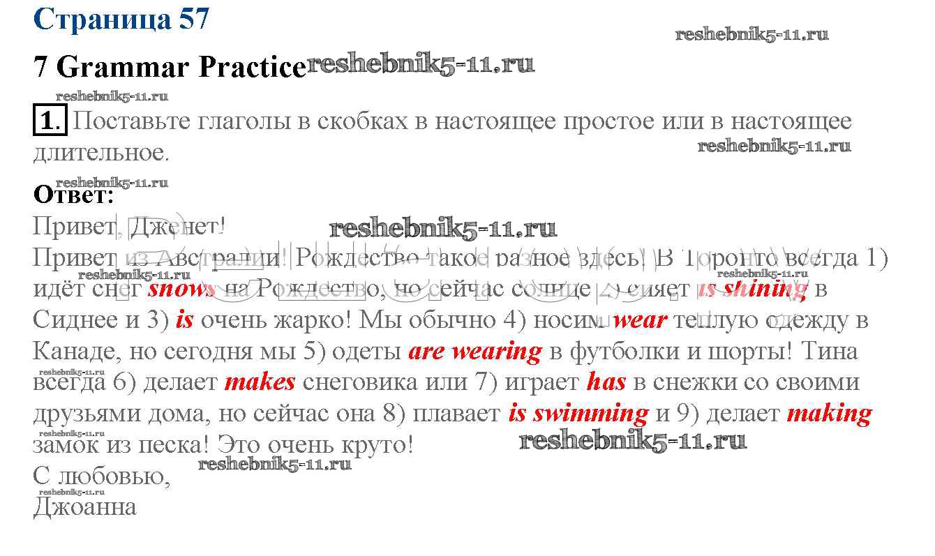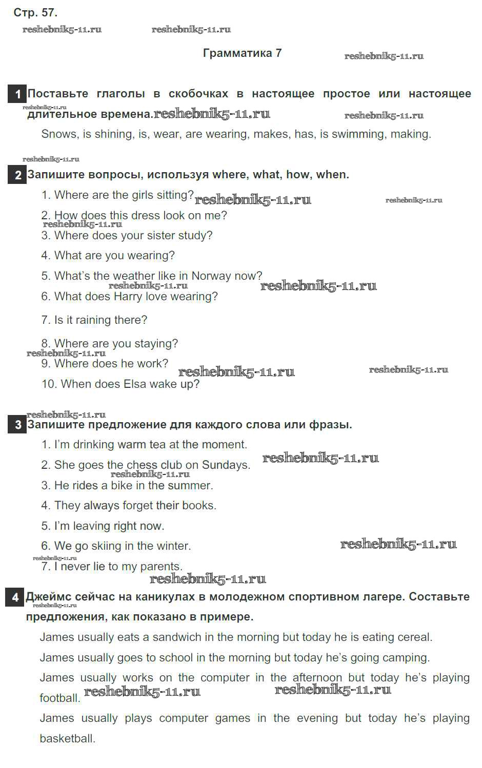Готовая домашняя работа с ответами по Английскому языку за 5 класс Ваулина, Дули, Подоляко, Эванск Рабочая тетрадь Spotlight Просвещение 2016 ФГОС - Страницы 57