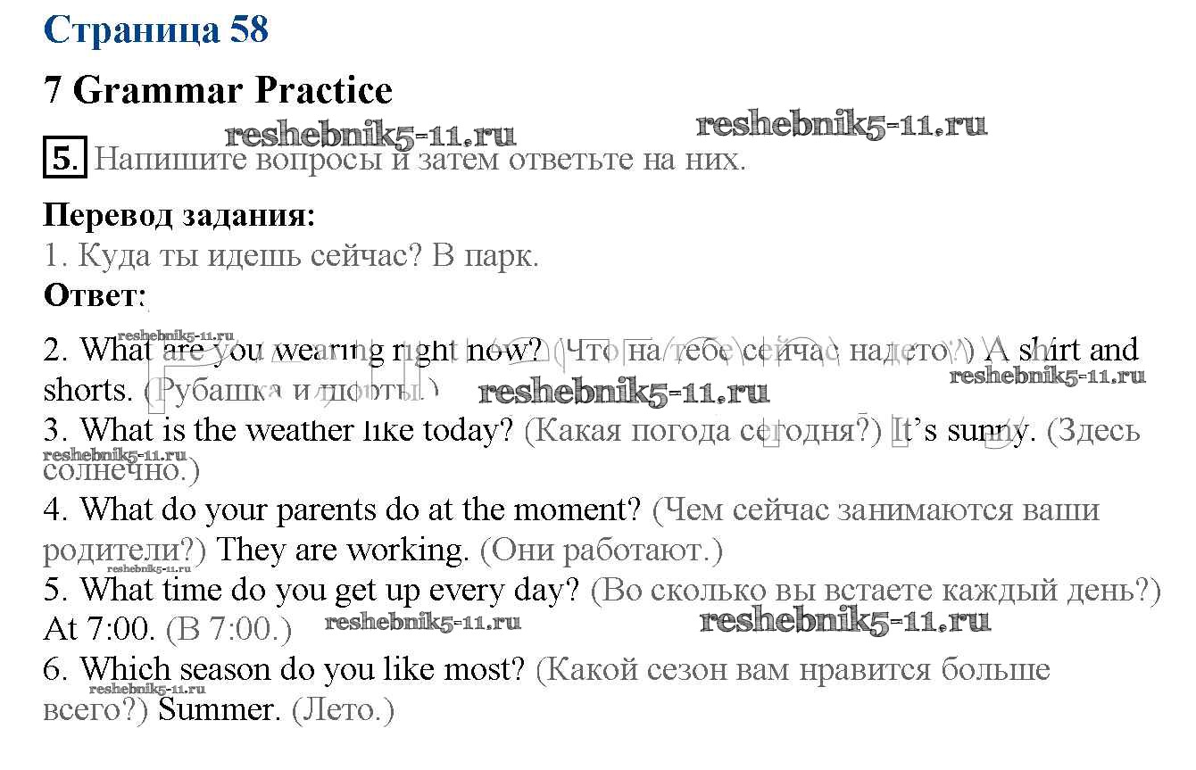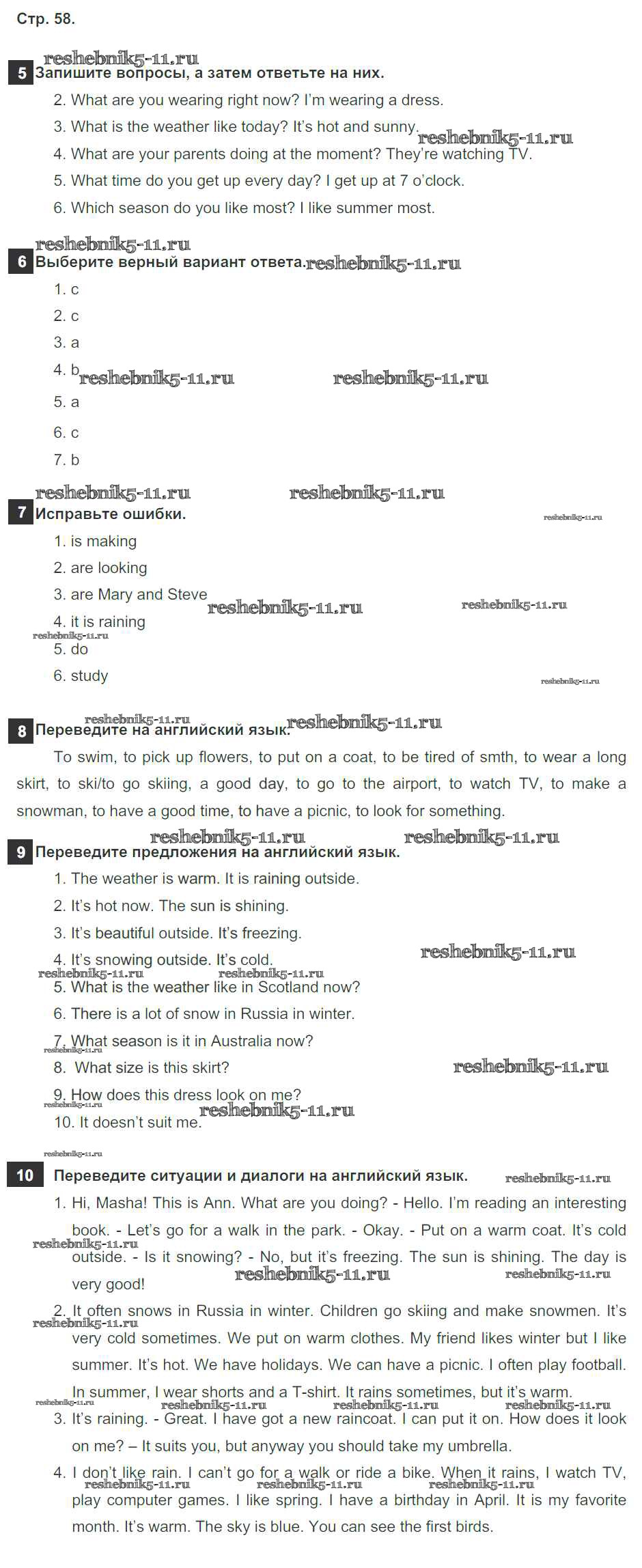 Готовая домашняя работа с ответами по Английскому языку за 5 класс Ваулина, Дули, Подоляко, Эванск Рабочая тетрадь Spotlight Просвещение 2016 ФГОС - Страницы 58