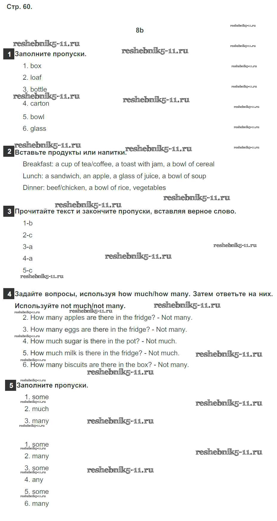 Готовая домашняя работа с ответами по Английскому языку за 5 класс Ваулина, Дули, Подоляко, Эванск Рабочая тетрадь Spotlight Просвещение 2016 ФГОС - Страницы 60
