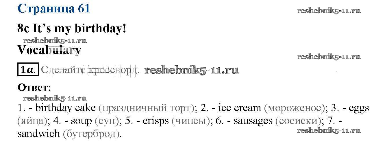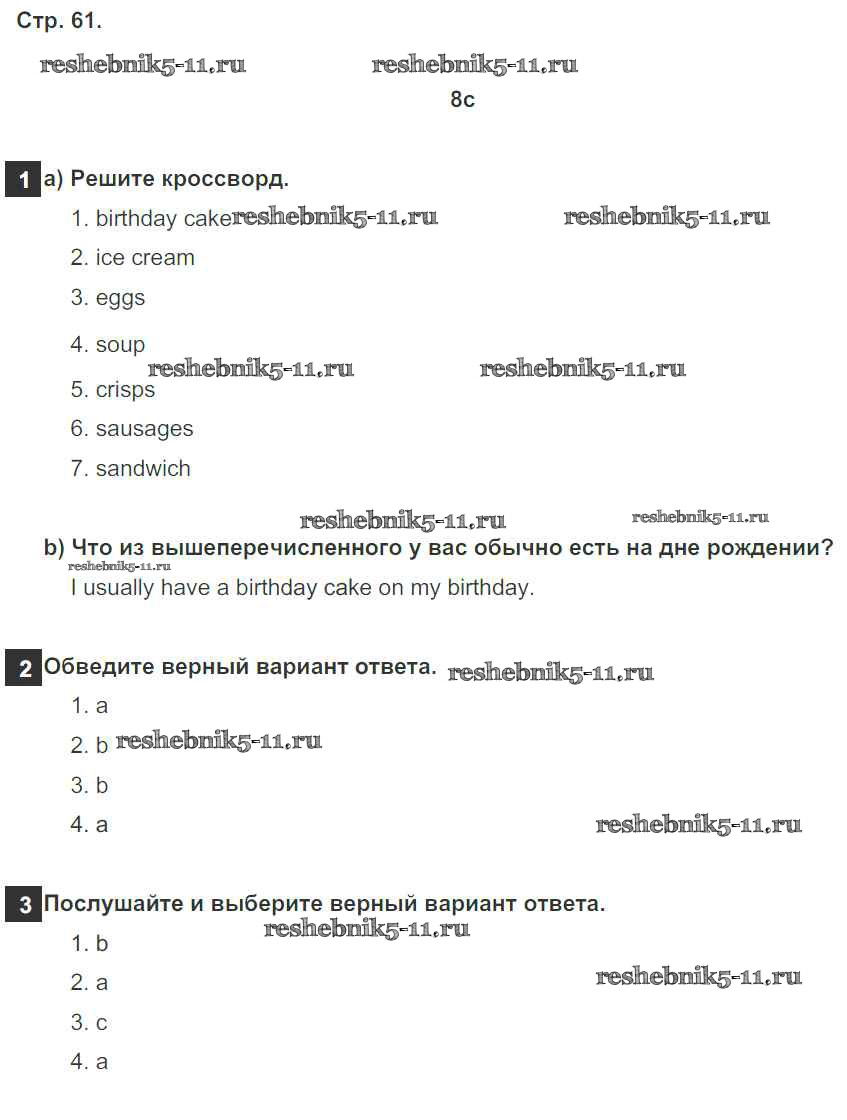 Готовая домашняя работа с ответами по Английскому языку за 5 класс Ваулина, Дули, Подоляко, Эванск Рабочая тетрадь Spotlight Просвещение 2016 ФГОС - Страницы 61